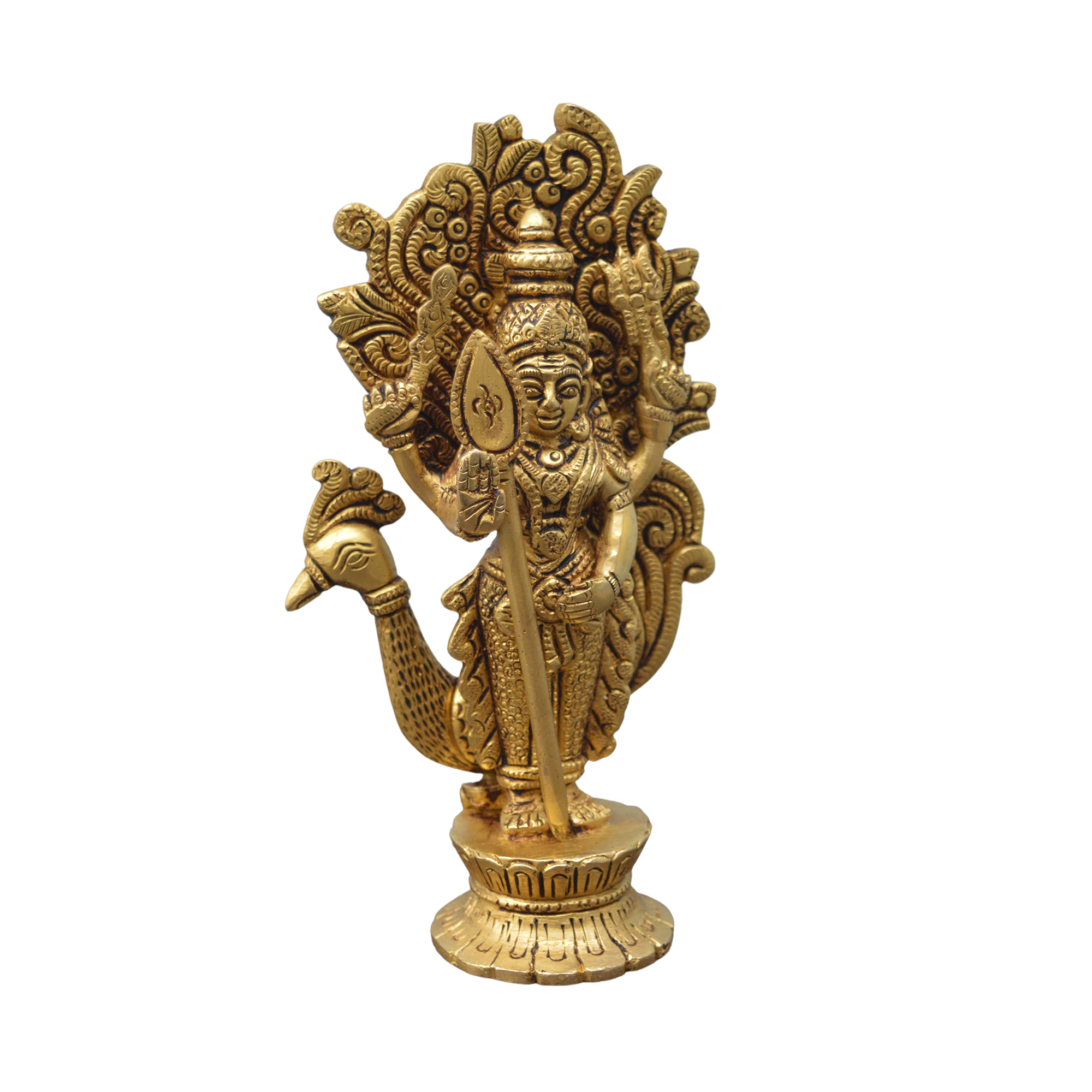 Design: Handcrafted brass idol of Lord Kartikeya with detailed traditional features