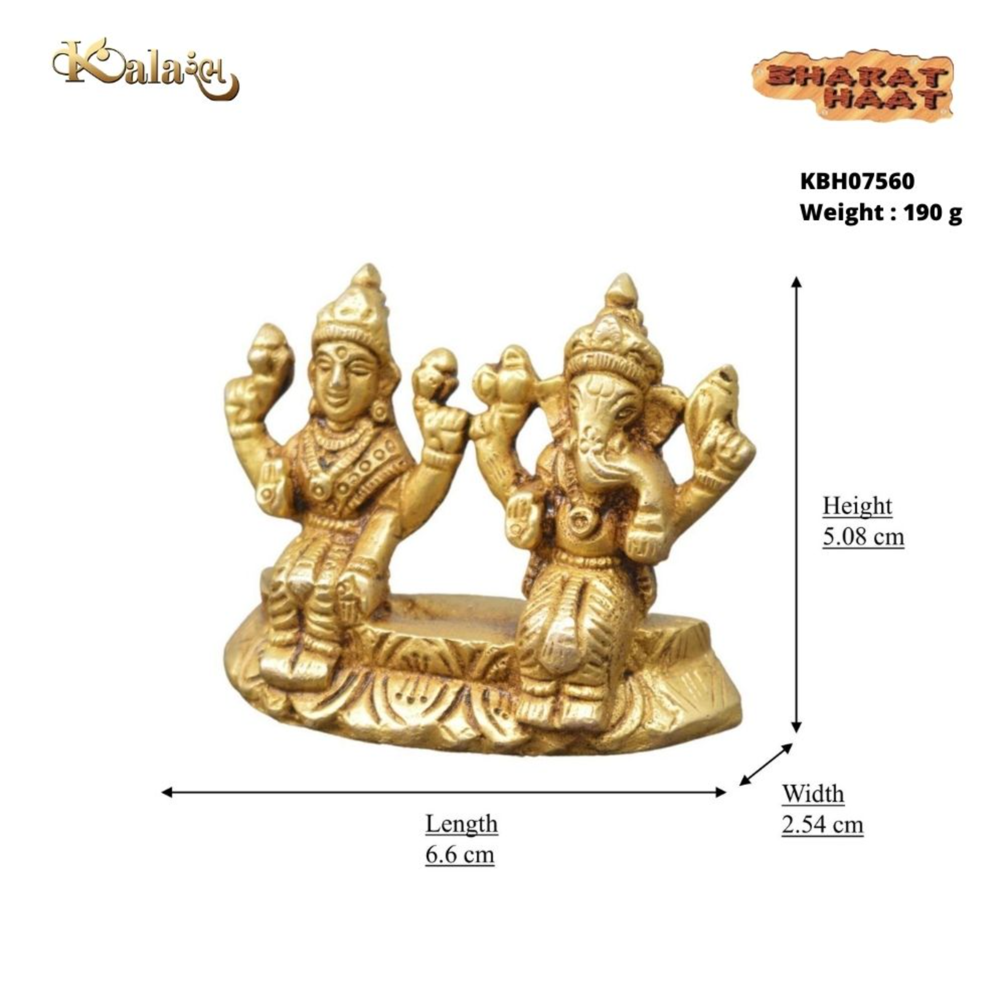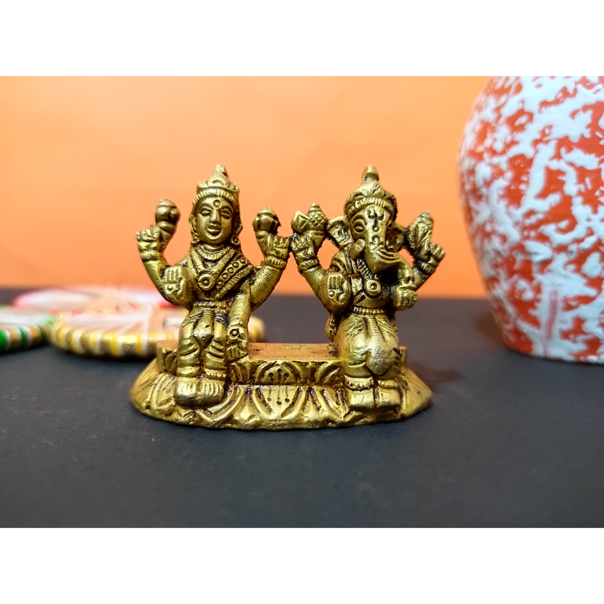 Design: Handcrafted brass idol featuring Lord Ganesha with Goddess Laxmi in a compact design