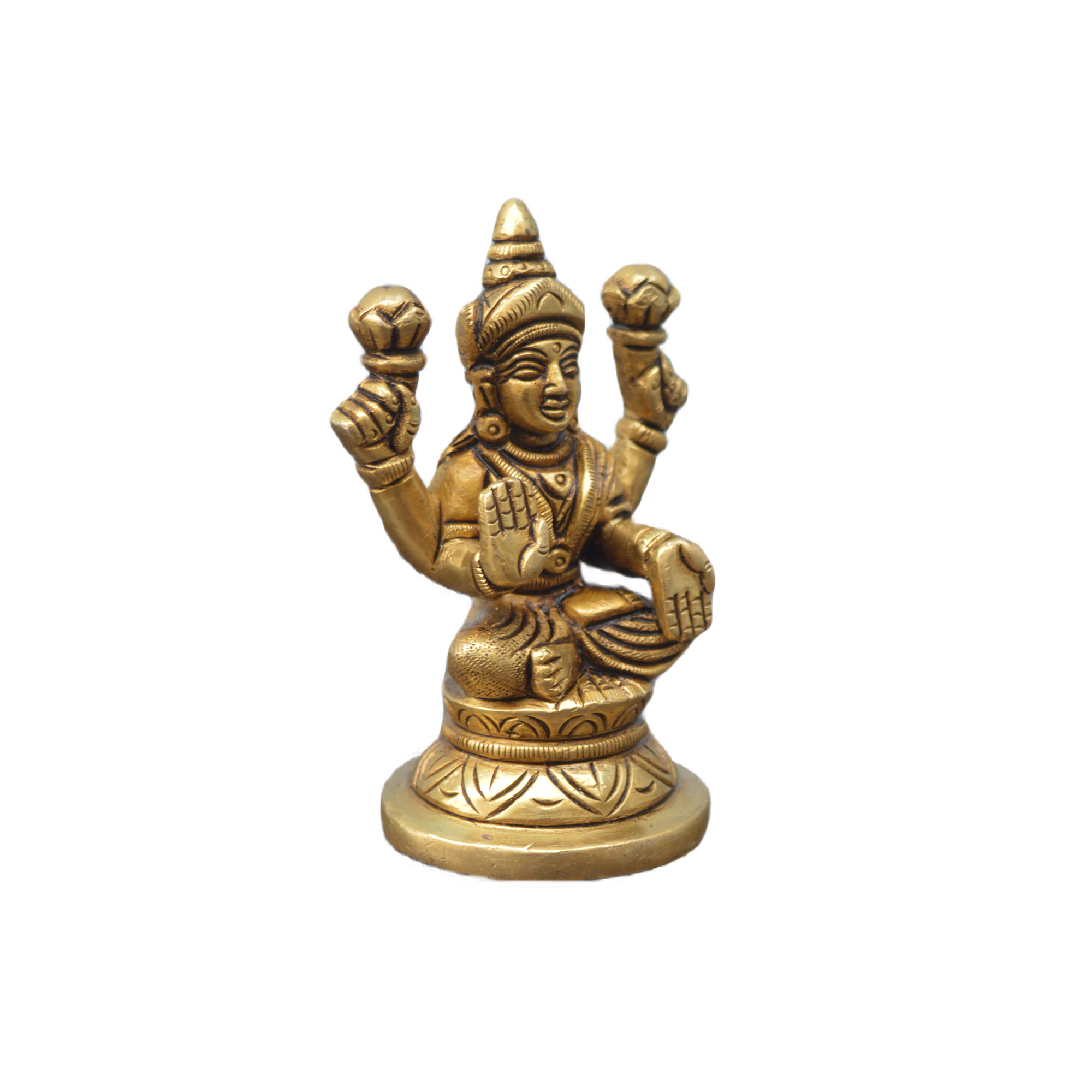 Small Brass Laxmi Ji idol with intricate handcrafted details. Ideal for home puja, gifting, or decoration.