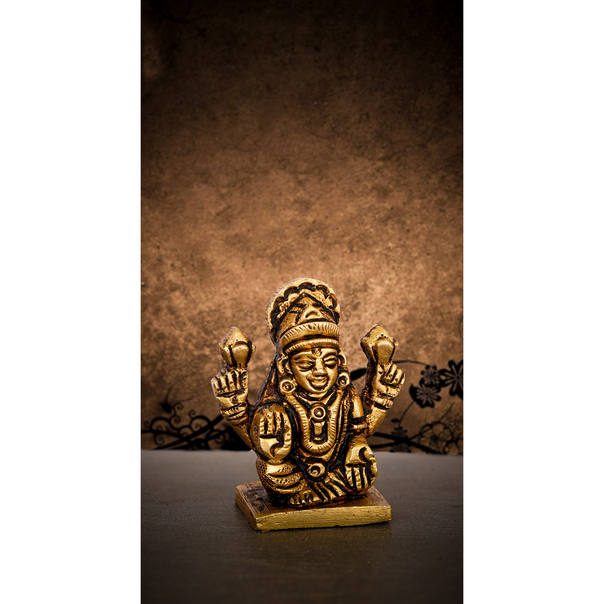 Small Brass Laxmi idol ideal for worship, décor, or gifting.