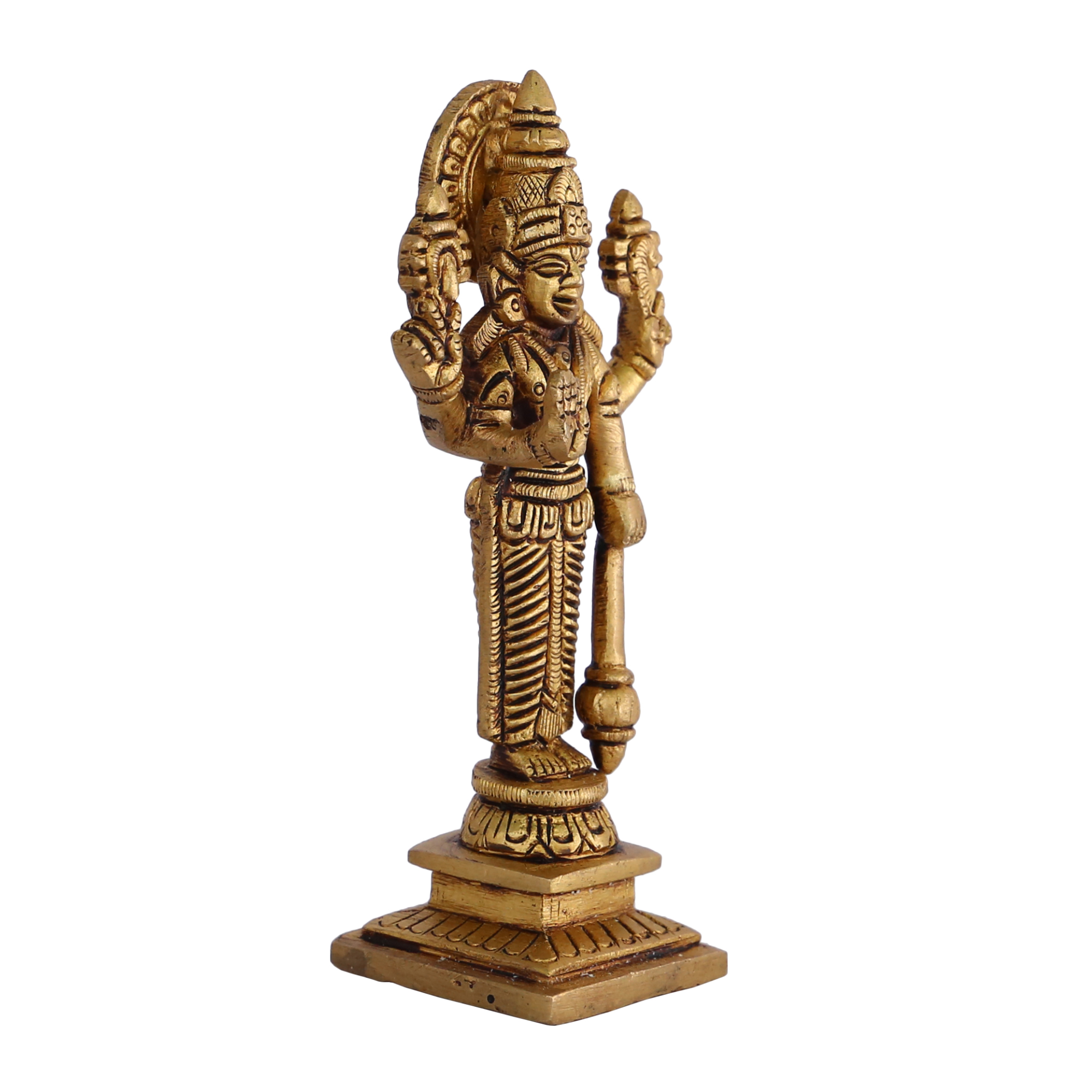 Elegant Brass Vishnu idol with intricate detailing. Ideal for pooja, home décor, and spiritual gifting.