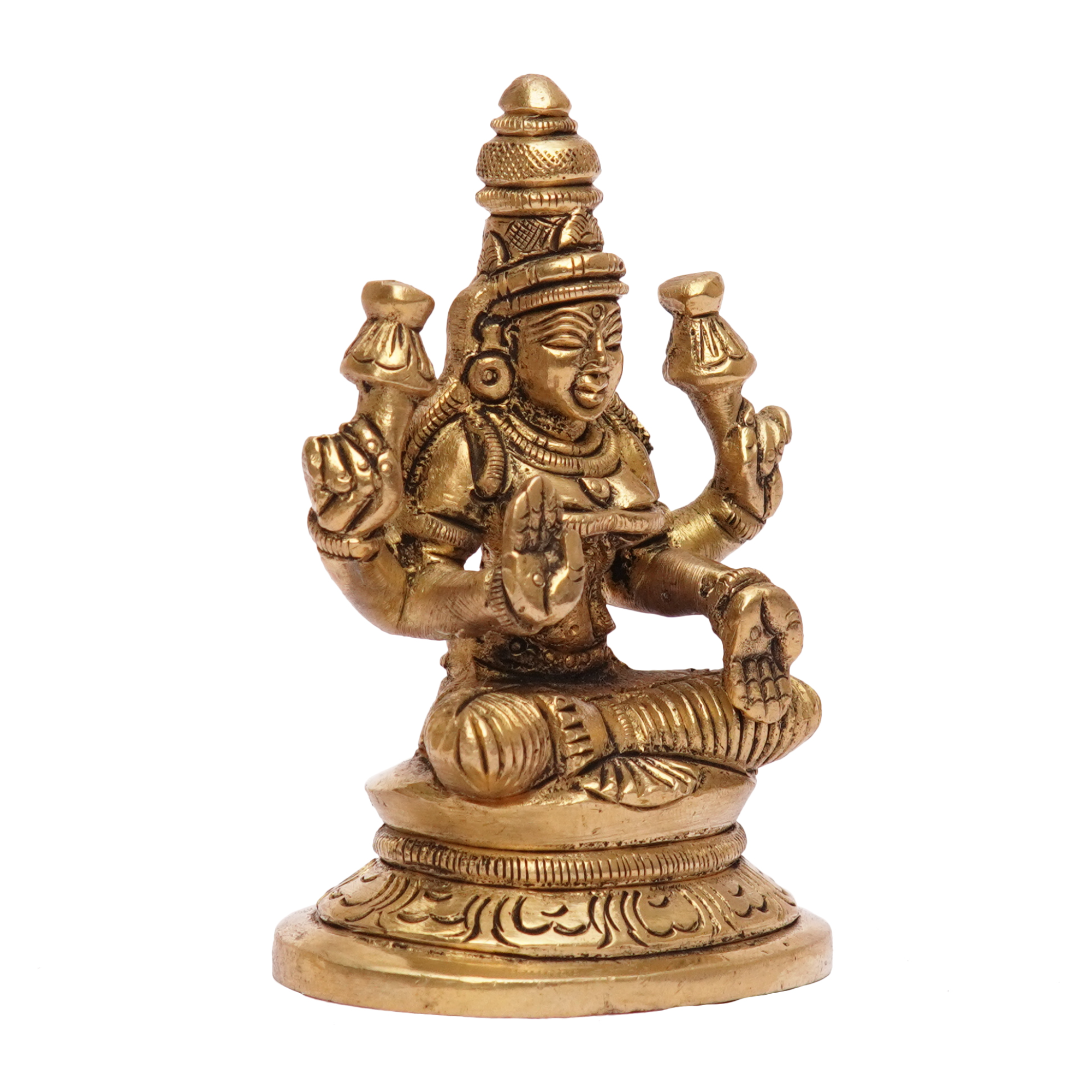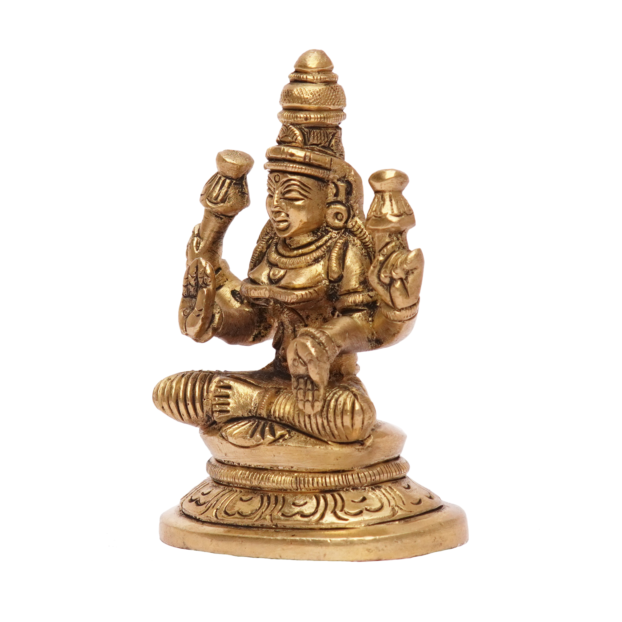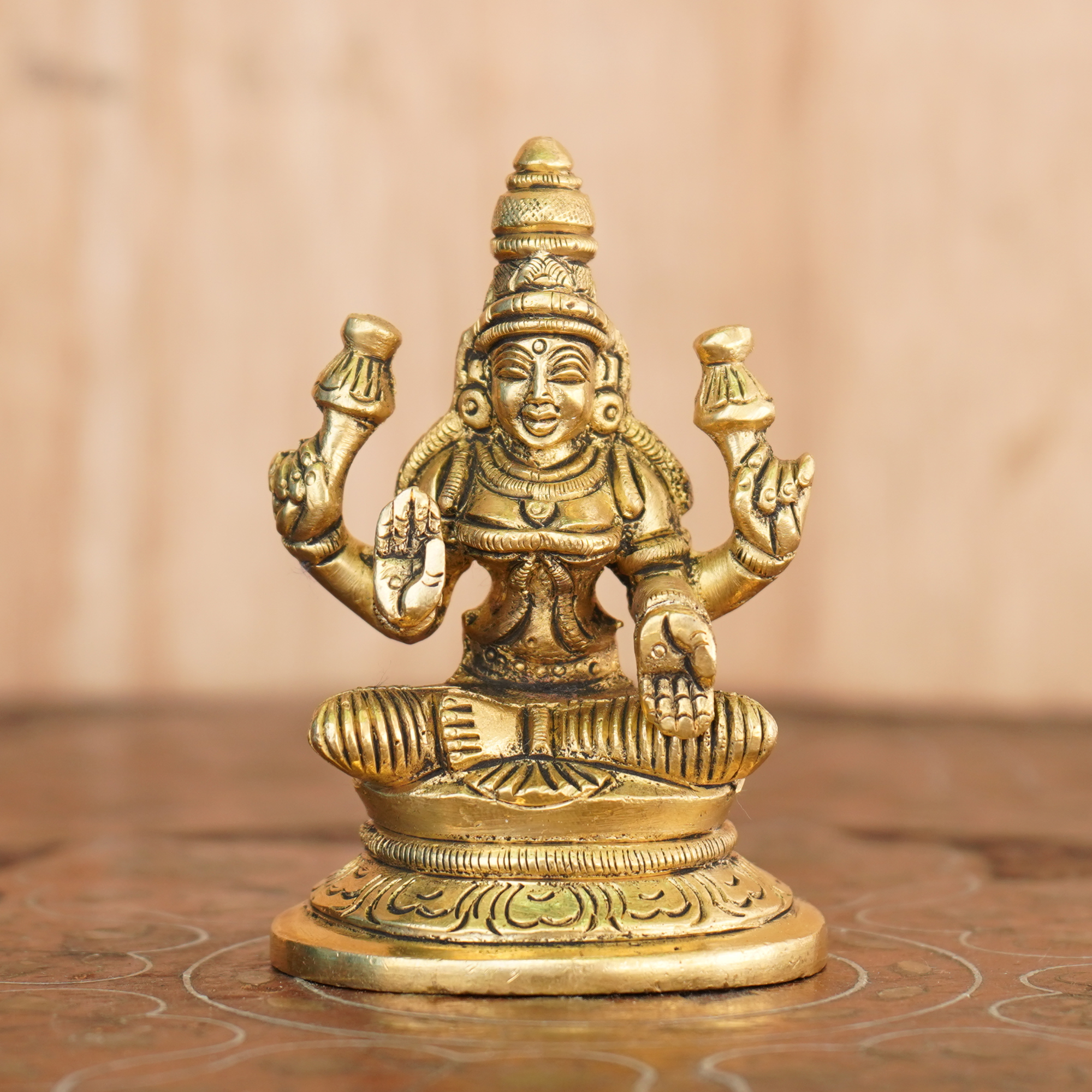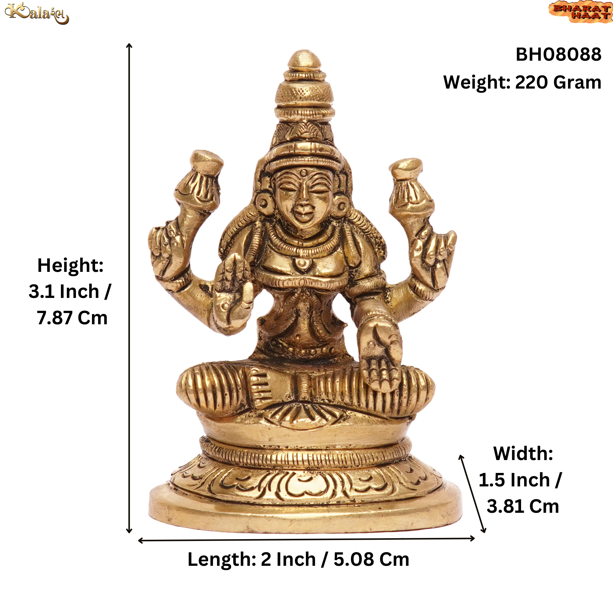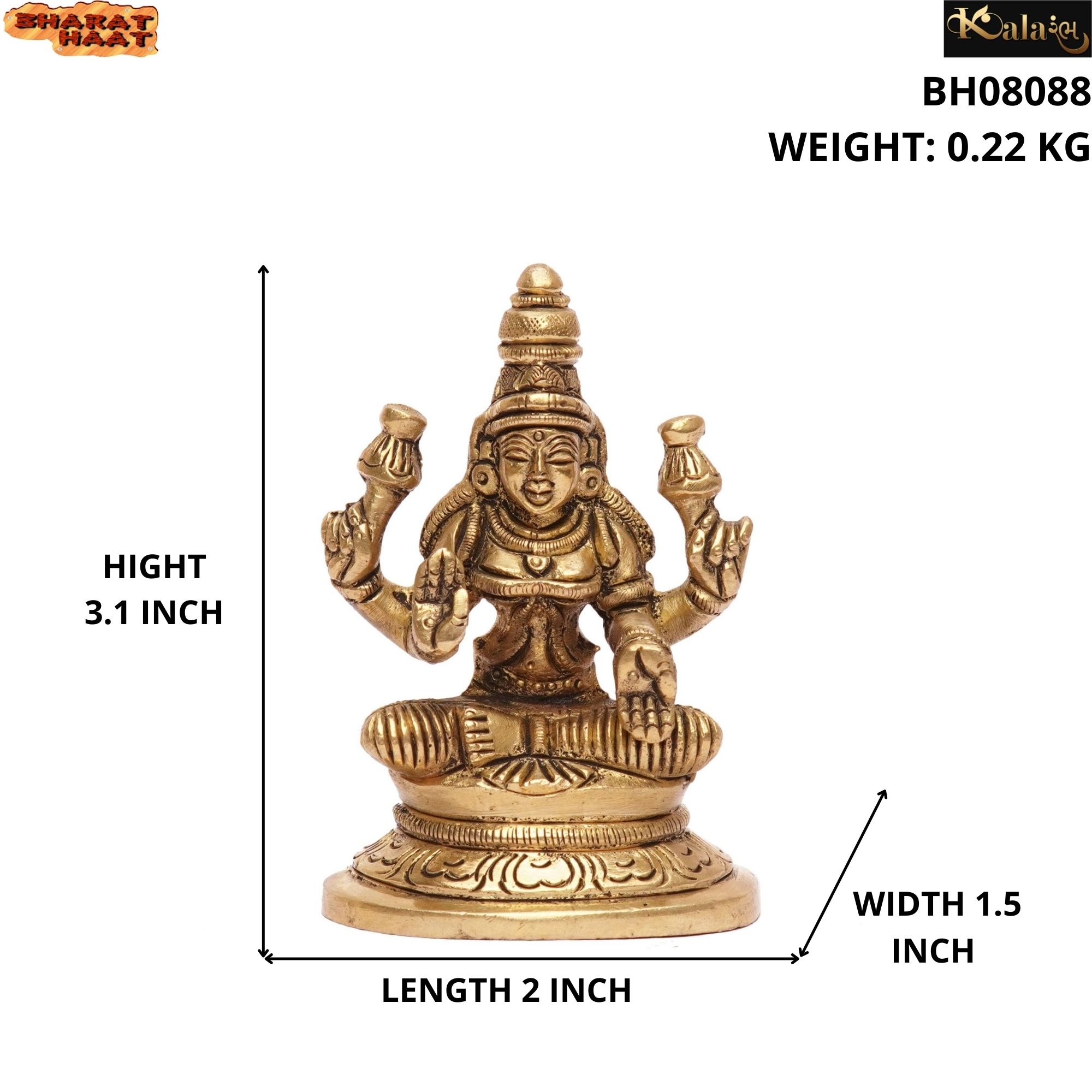 This beautifully crafted Brass Lakshmi idol measures 2 x 1.5 x 3.1 inches (5.08 x 3.81 x 7.87 cm) and weighs 220 grams. Perfect for home temples, offices, or gifting, it symbolizes wealth, prosperity, and good fortune, bringing positive energy to any space.