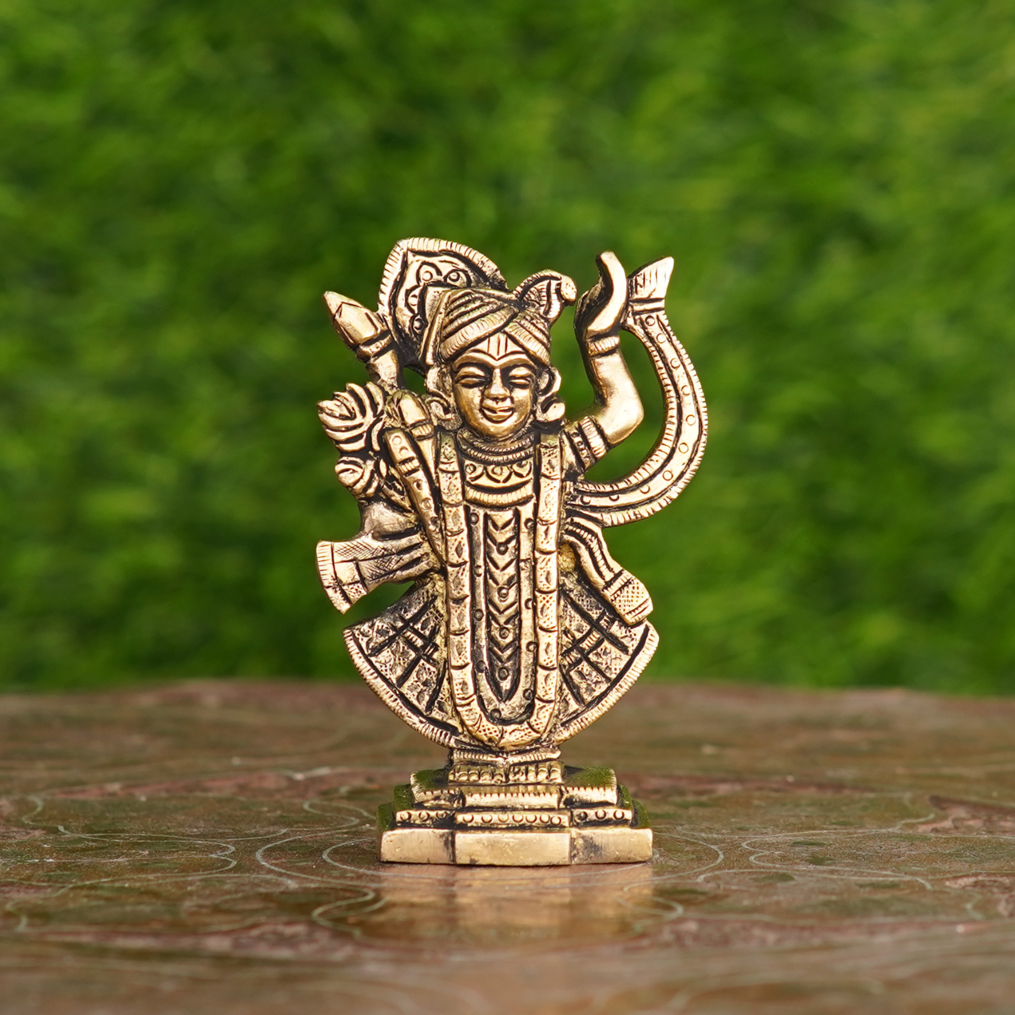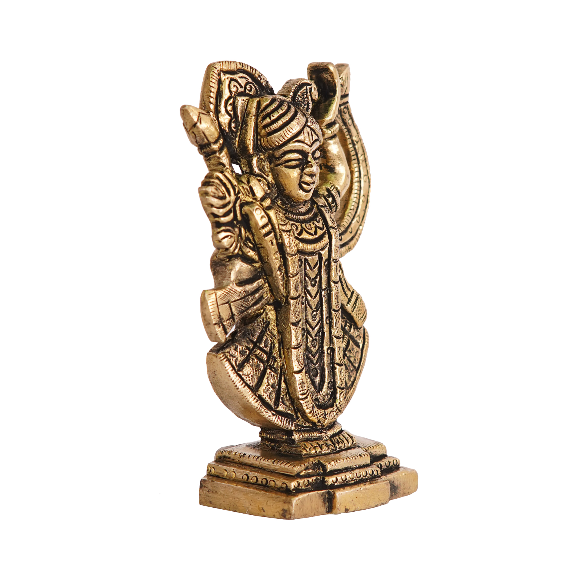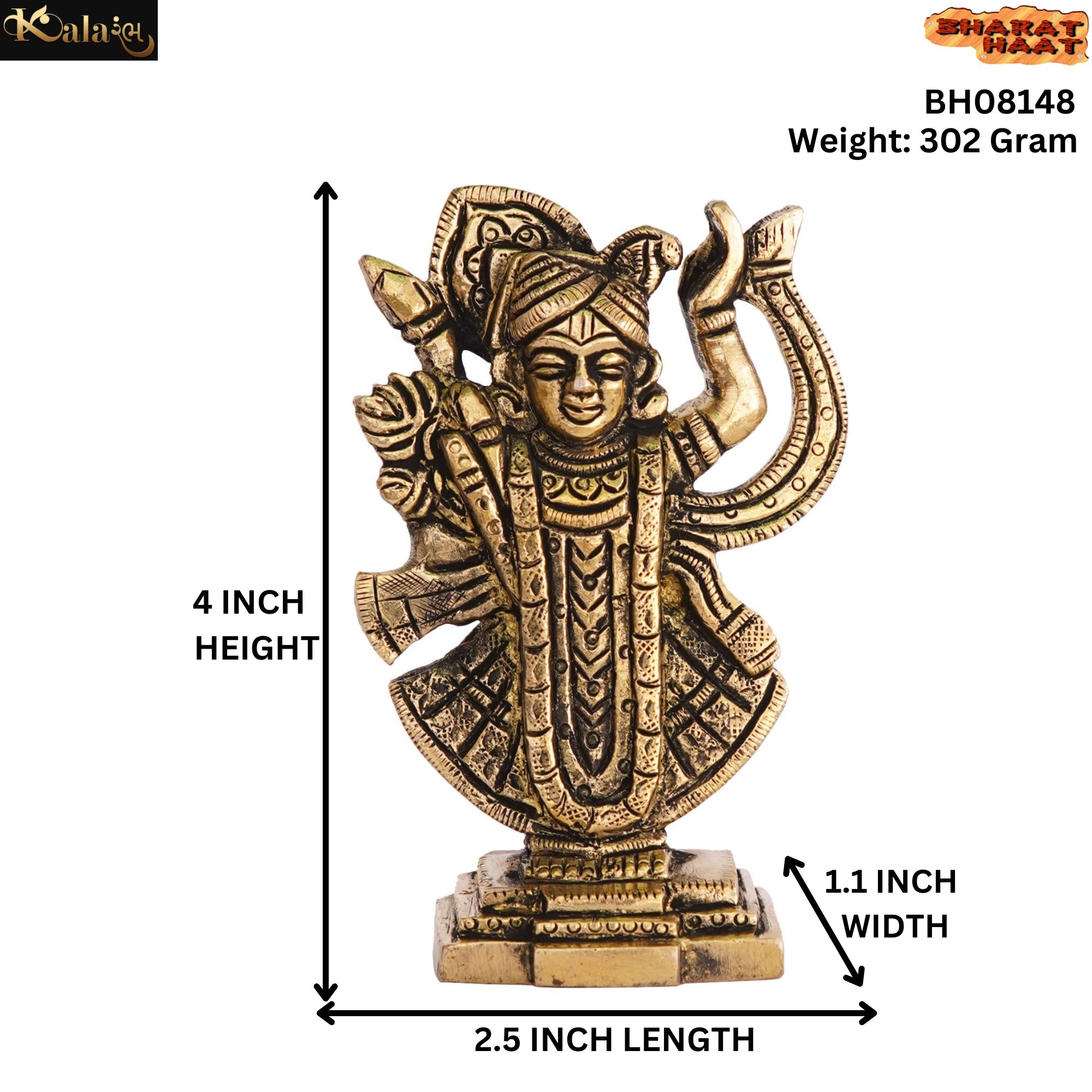 Design: Features intricate carvings and detailed design representing Shreenathji with traditional attire, posture, and embellishments. Perfect for religious, decorative, or collectible purposes