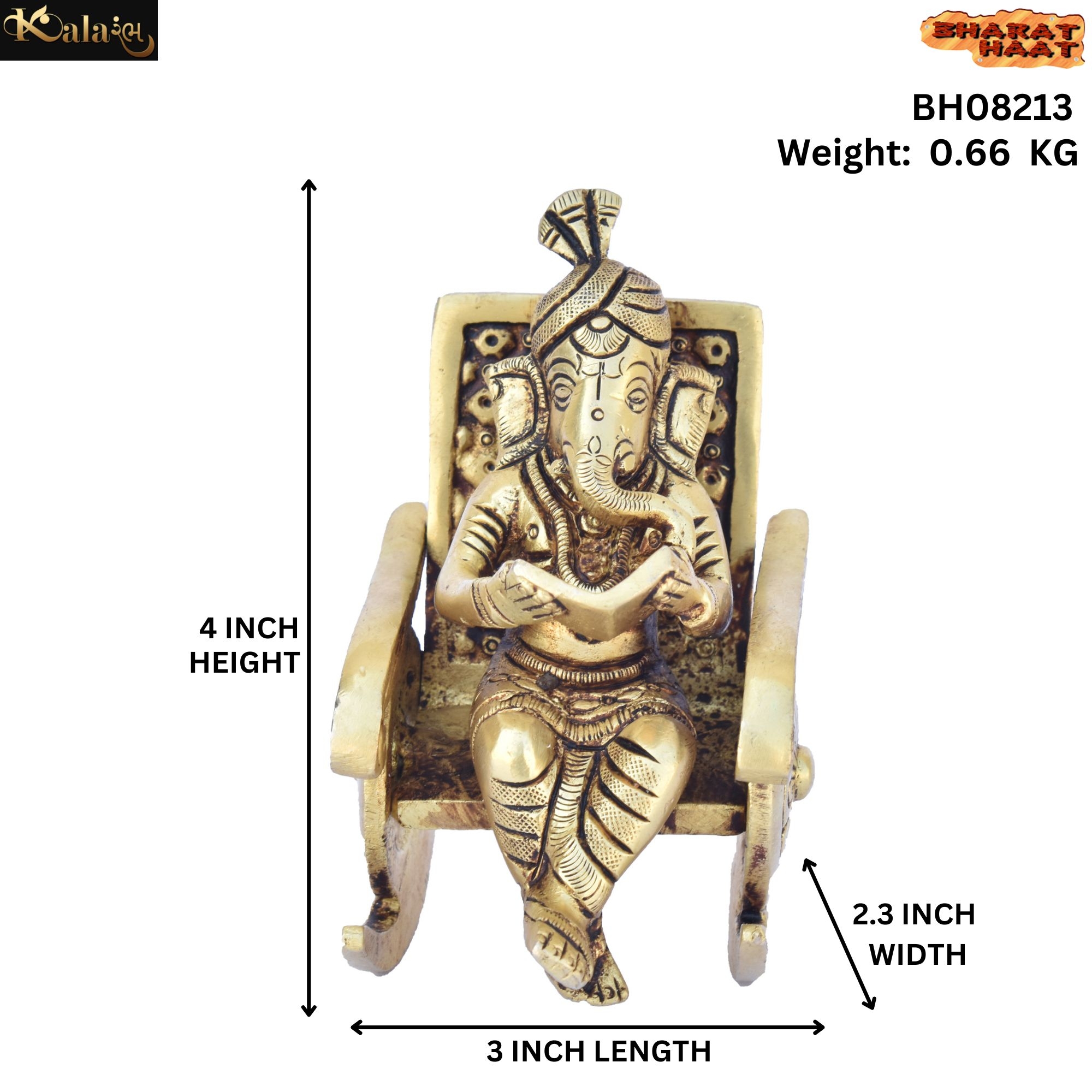 This Brass Chair Ganesh Sitting idol measures 3 x 2.3 x 4 inches (7.62 x 5.84 x 10.16 cm) and weighs 660 grams. A beautifully crafted statue of Lord Ganesha seated on a chair, perfect for pooja spaces, home temples, or as a meaningful gift. Its elegant design adds spiritual energy and refinement to any space.