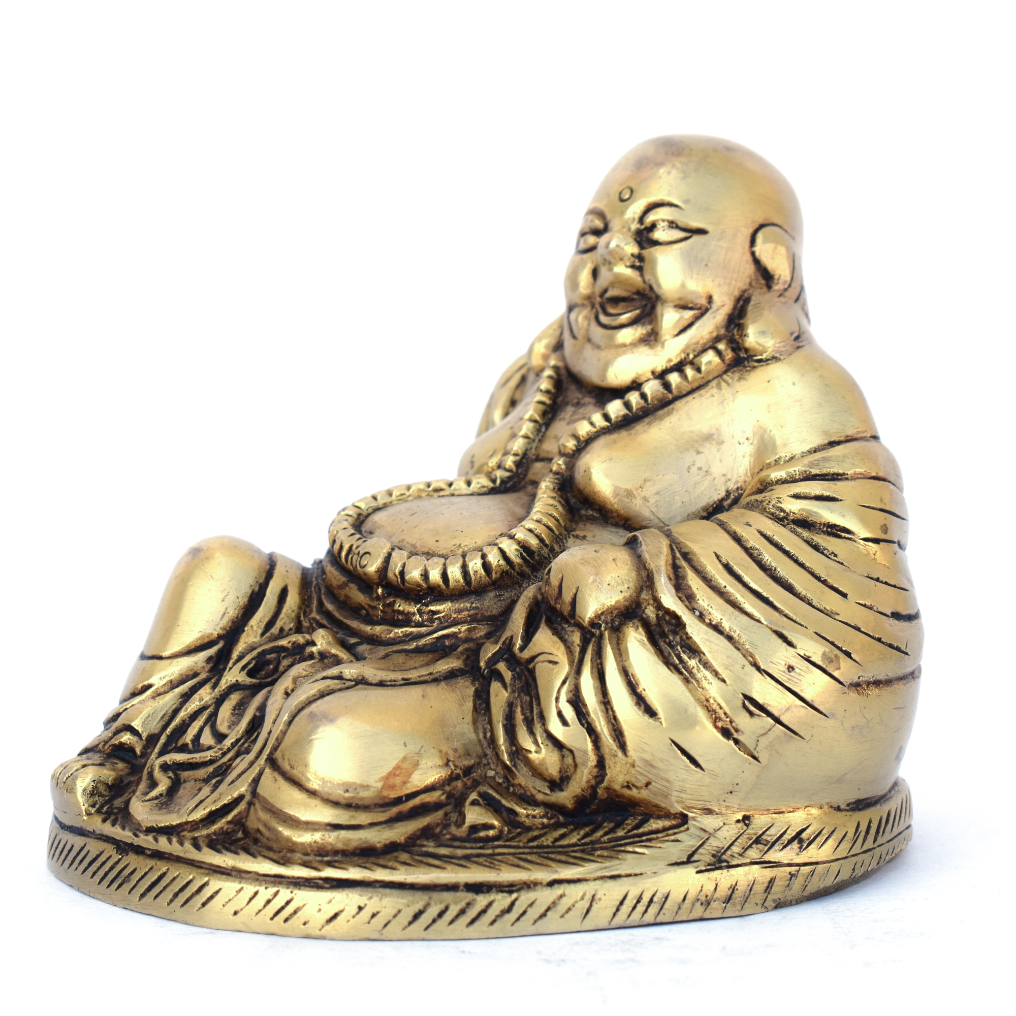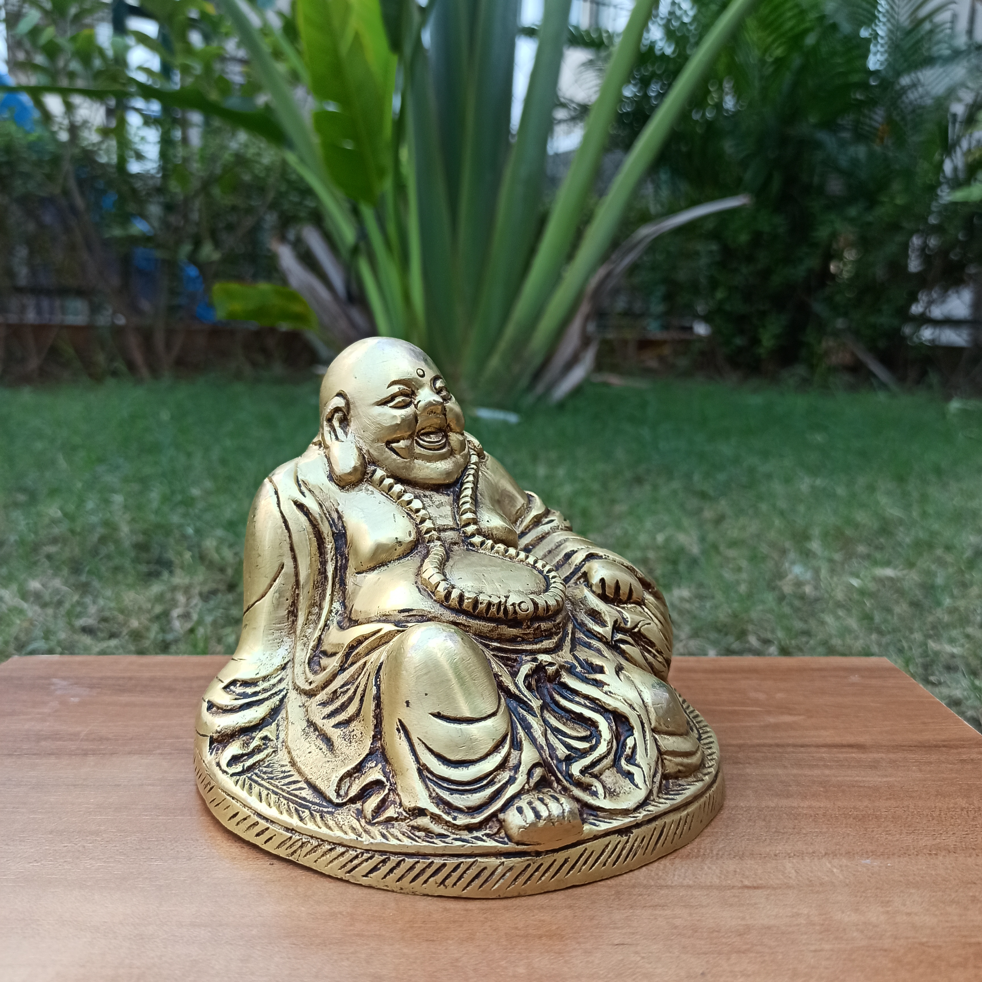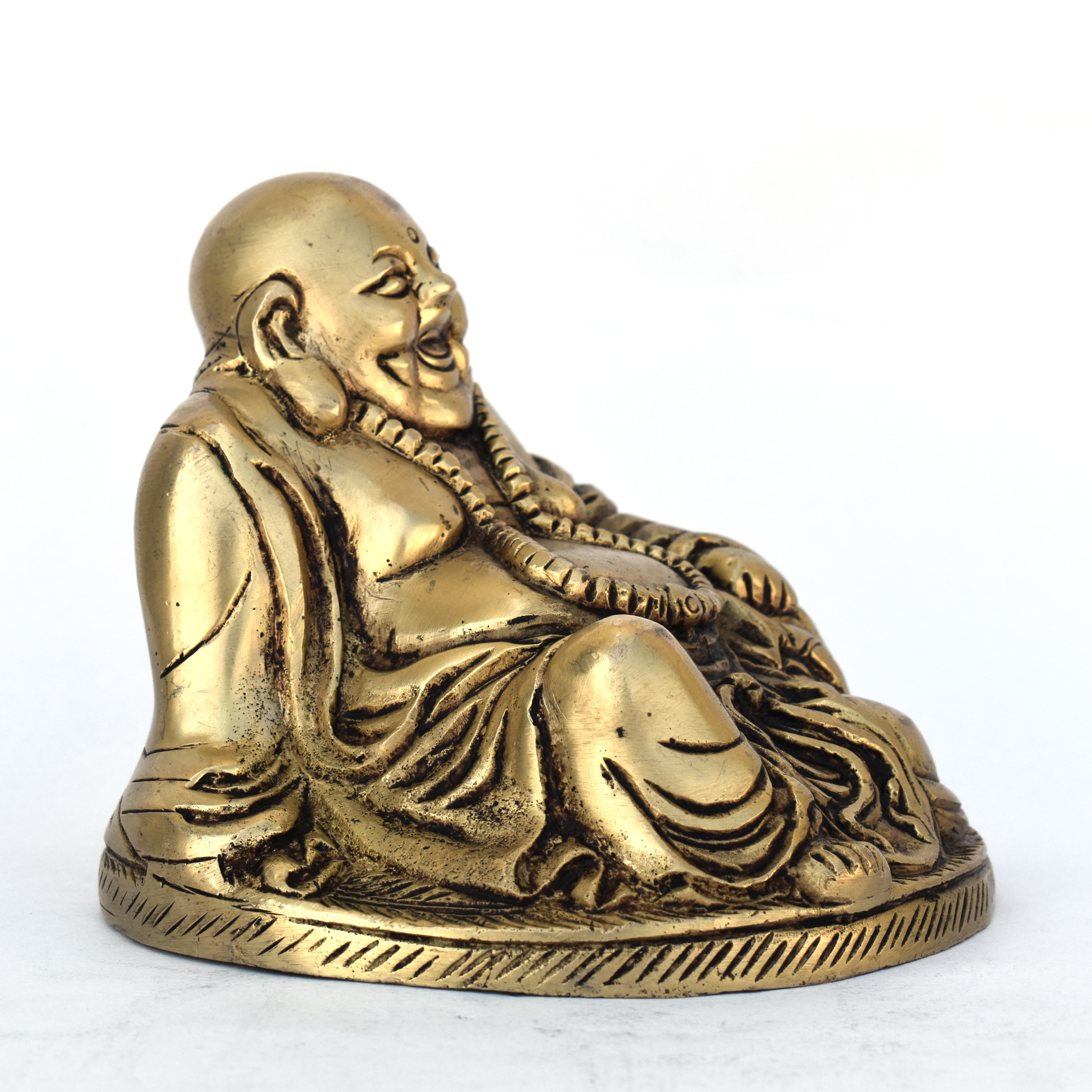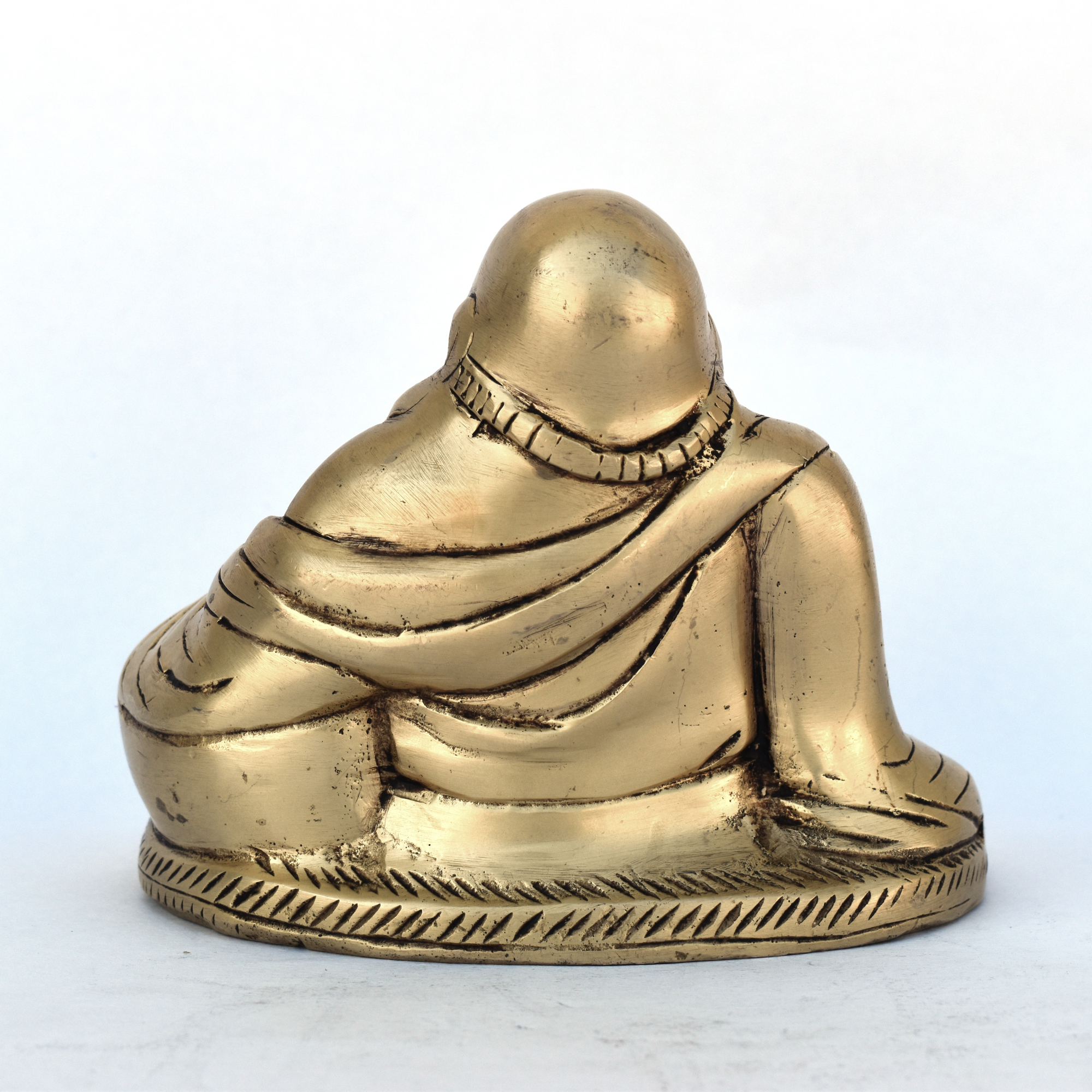 This Brass Laughing Buddha Medium measures 5 x 4.8 x 4 inches (12.7 x 12.19 x 10.16 cm) and weighs 1.34 kg. A beautifully crafted statue symbolizing happiness, prosperity, and positive energy. Perfect for home décor, offices, or as a thoughtful gift, this brass Buddha adds charm and good fortune to any space.