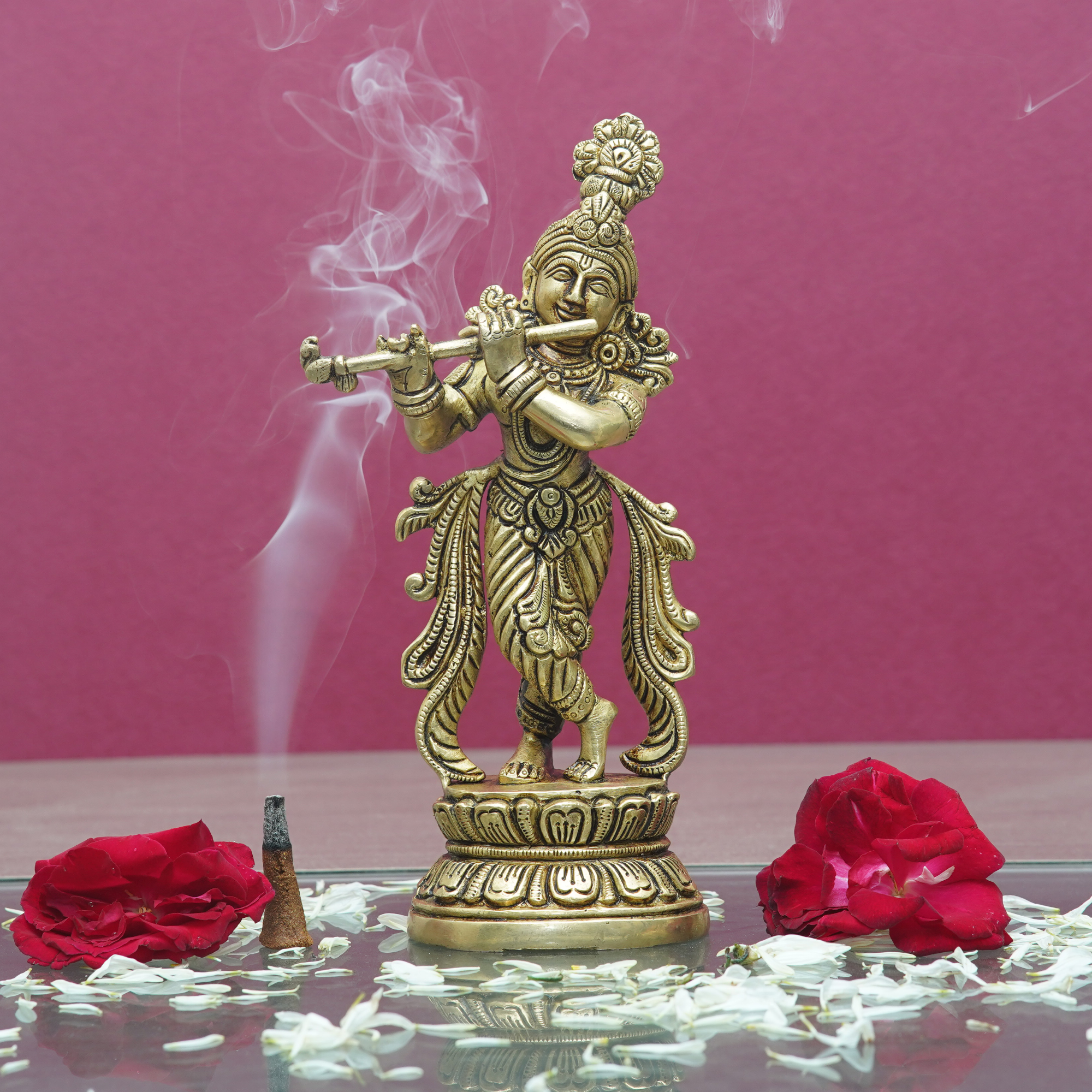 Design: Features Lord Krishna in a divine flute-playing pose, capturing his beauty, grace, and devotion