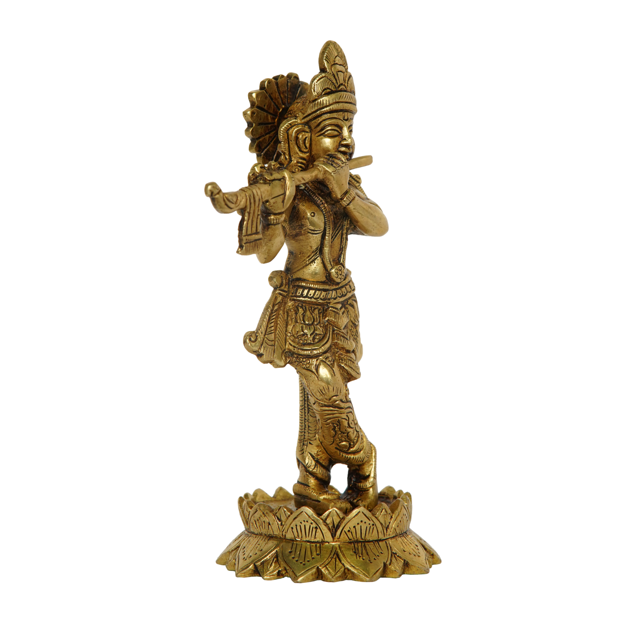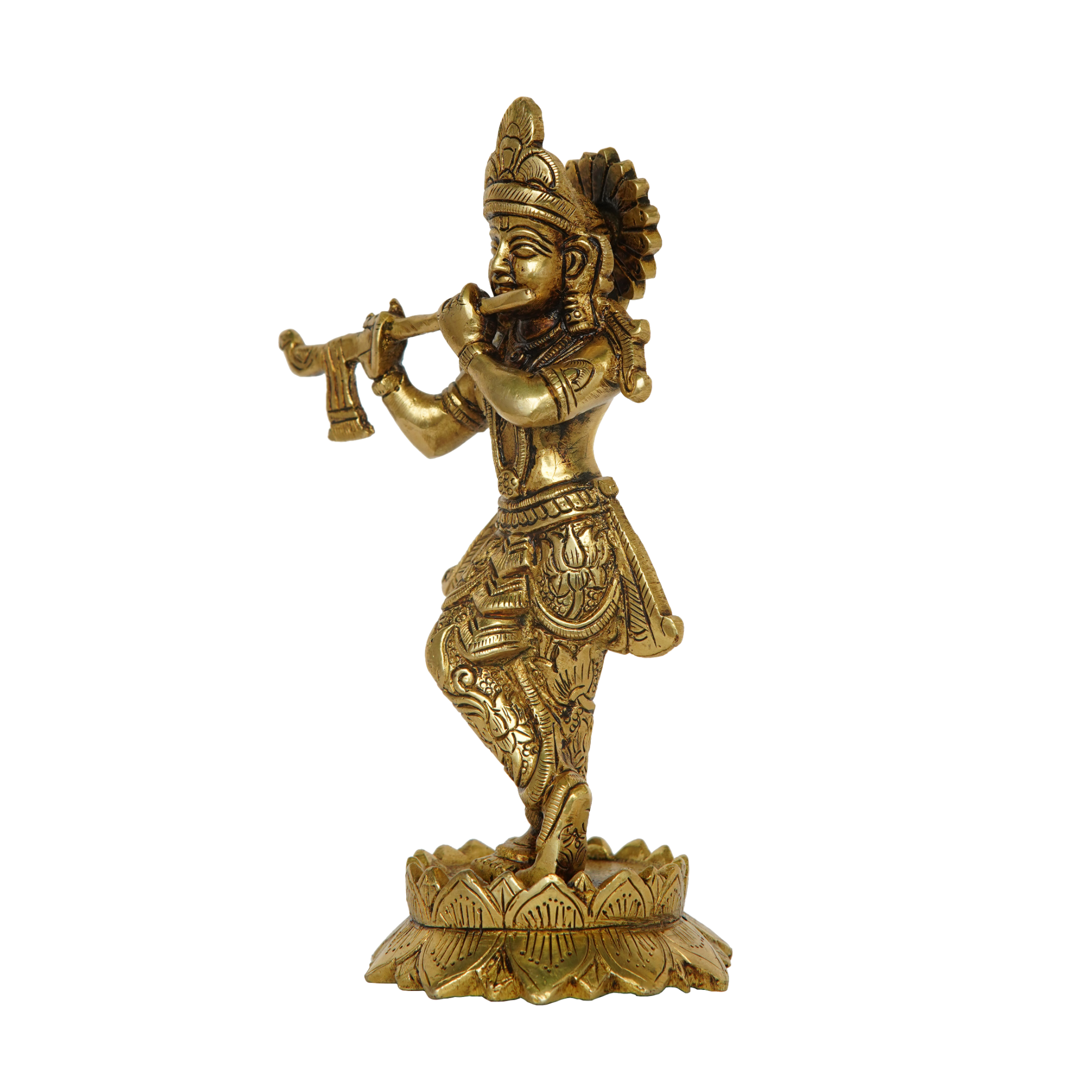 Design: Features Lord Krishna in a graceful flute-playing pose, a symbol of divine music, love, and spiritual awakening