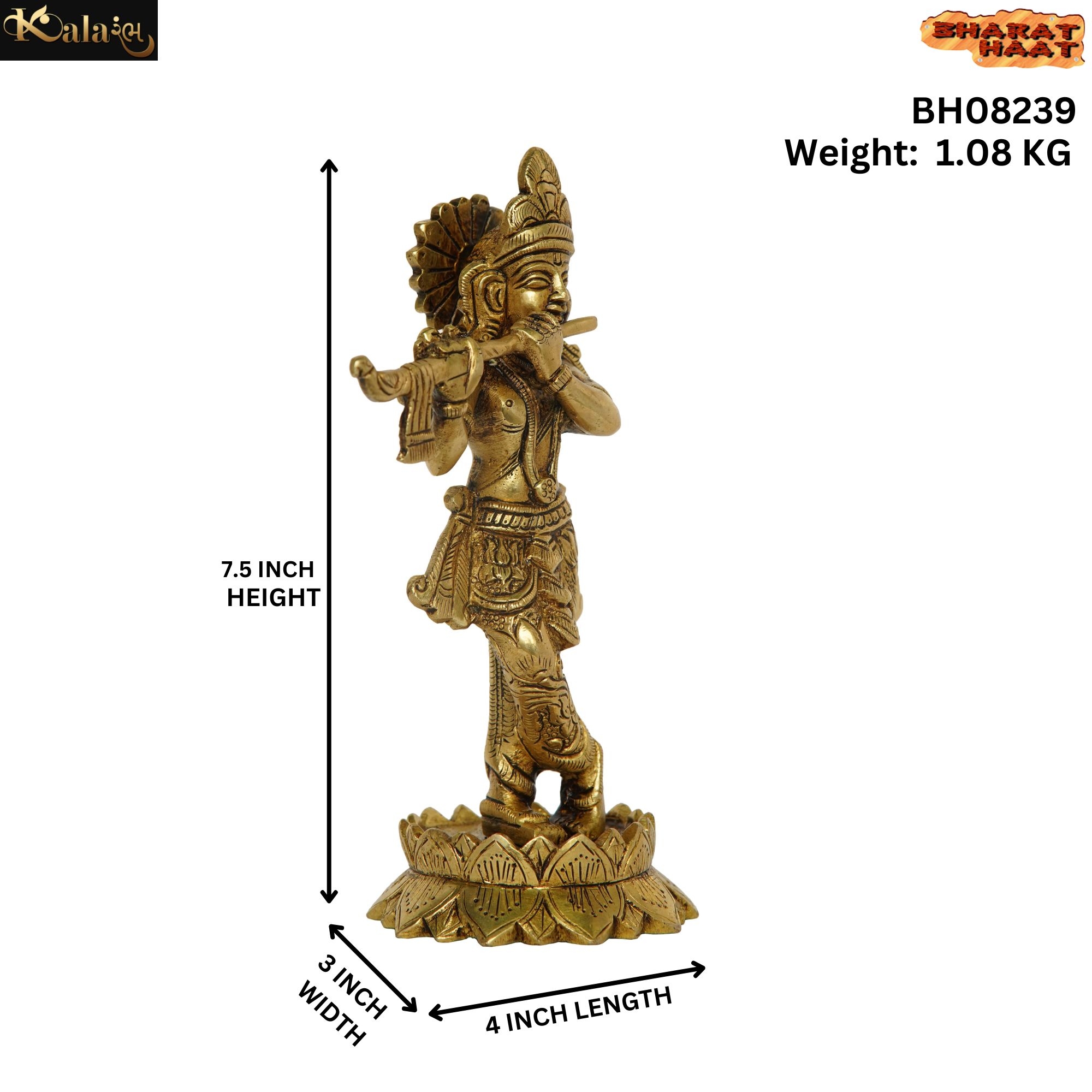 This Brass Krishna idol measures 4 x 3 x 7.5 inches (10.16 x 7.62 x 19.05 cm) and weighs 1.08 kg. Expertly crafted, this statue depicts Lord Krishna in a divine, serene pose, symbolizing love, wisdom, and spiritual blessings. Ideal for pooja rituals, home temples, or gifting, it brings both beauty and divine energy to any space.