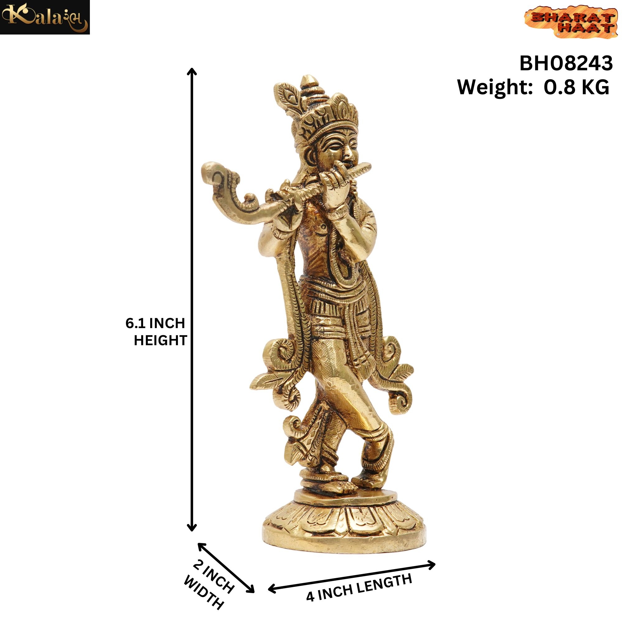 This Brass Krishna idol measures 4 x 2 x 6.1 inches (10.16 x 5.08 x 15.49 cm) and weighs 800 grams. Meticulously handcrafted, this statue of Lord Krishna exudes divine energy, representing love, wisdom, and spiritual blessings. Ideal for pooja rituals, home temples, or as a thoughtful gift, it brings elegance and divine presence to any space.