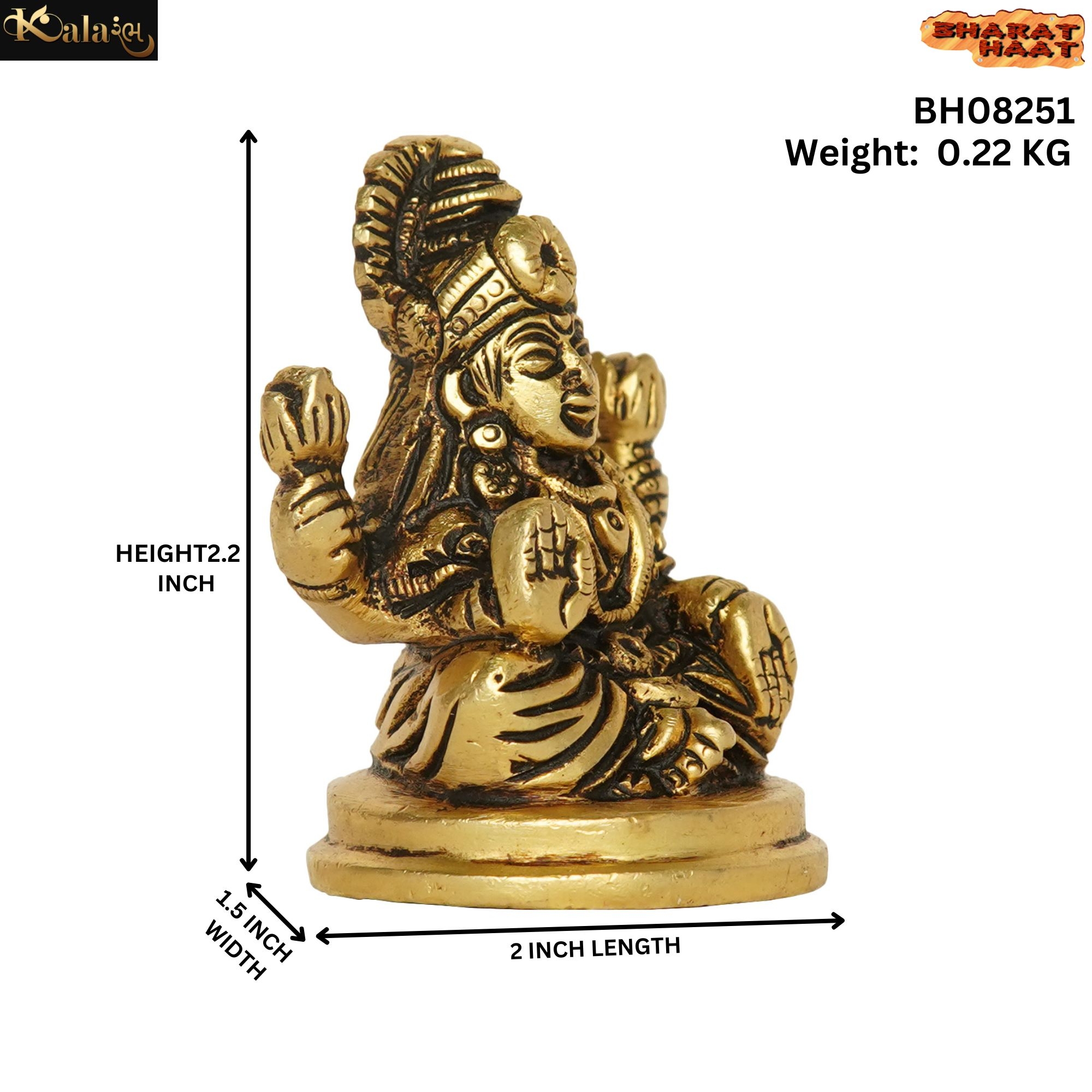This Brass Laxmi idol measures 2 x 1.5 x 2.2 inches (5.08 x 3.81 x 5.58 cm) and weighs 220 grams. Crafted with care, this statue represents Goddess Laxmi, the goddess of wealth, prosperity, and good fortune. Perfect for pooja rituals, home temples, or gifting, it adds spiritual energy, blessings, and elegance to any space.