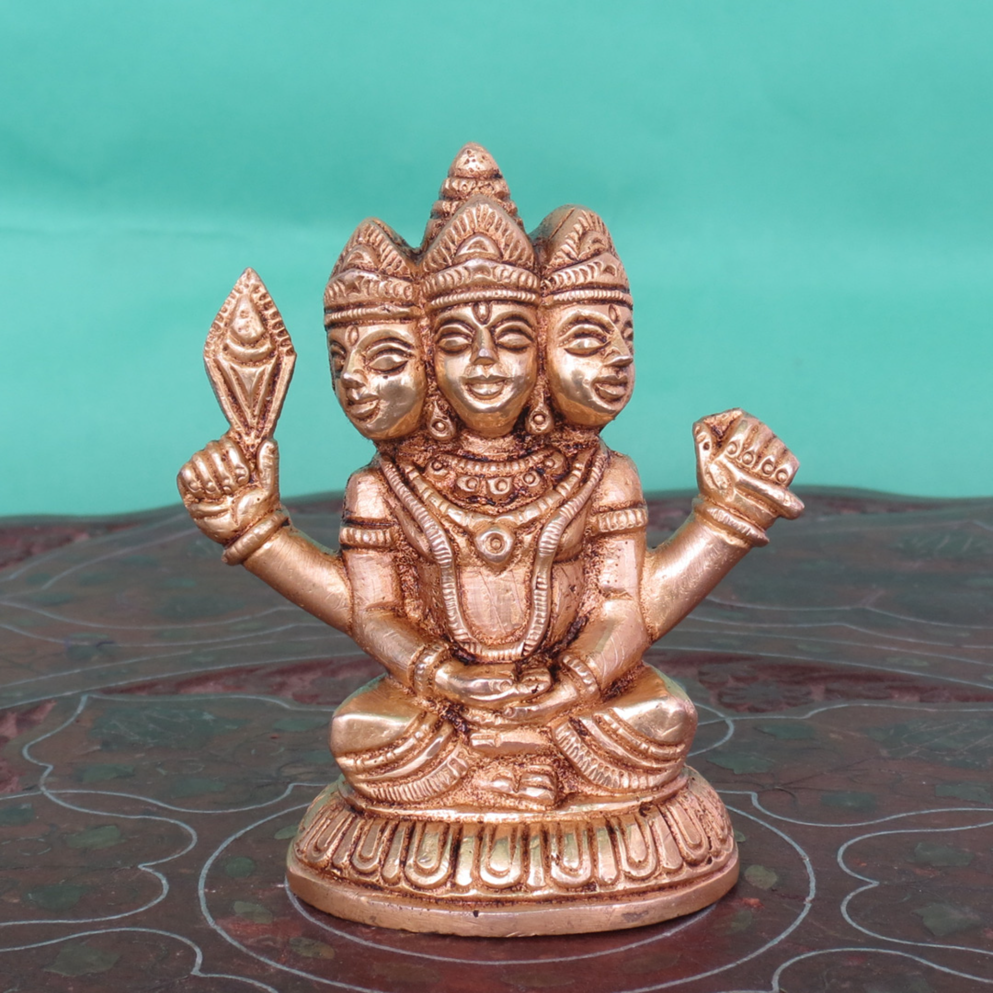 This elegant Brass Lord Brahma statue features the creator god in detailed craftsmanship. Made from high-quality brass, it measures 3.5 inches in height and weighs 420 grams, making it suitable for home temples, office desks, or spiritual décor spaces. Ideal for worship and gifting.