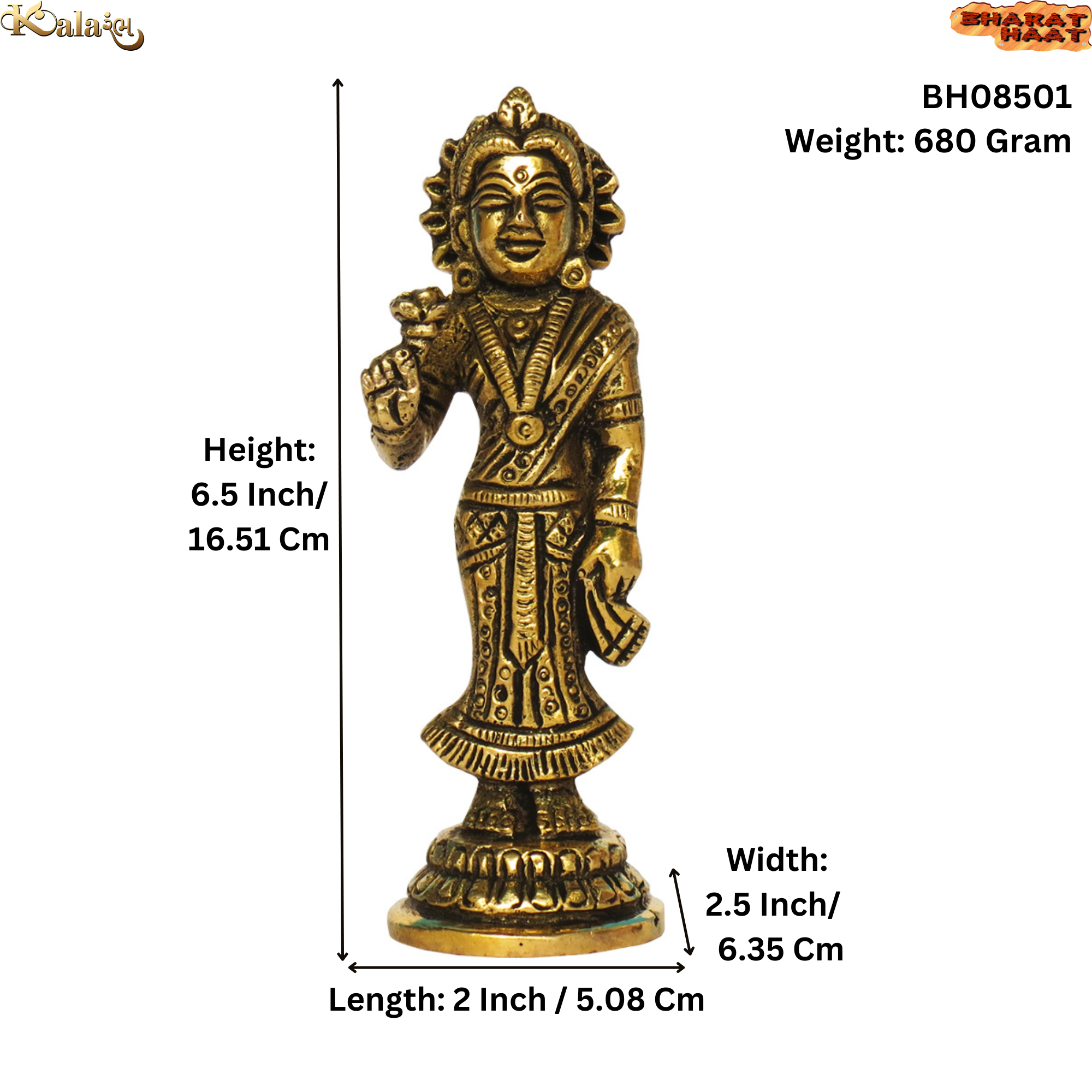This exquisite Brass Radha statue showcases the divine Goddess Radha in intricate detail. Made from high-quality solid brass, it stands 6.5 inches tall and weighs 680 grams, making it perfect for home temples, shelves, or as a spiritual gift.