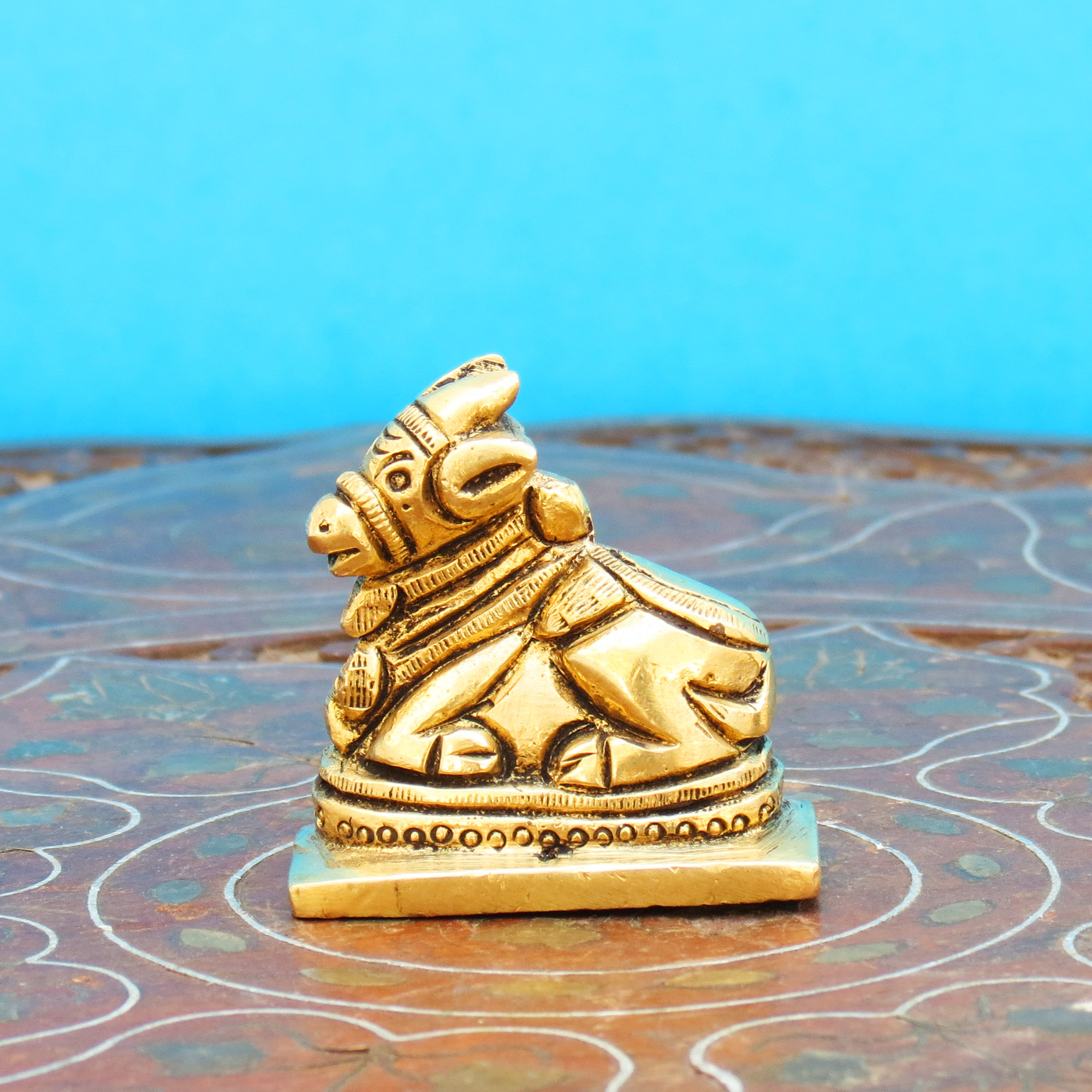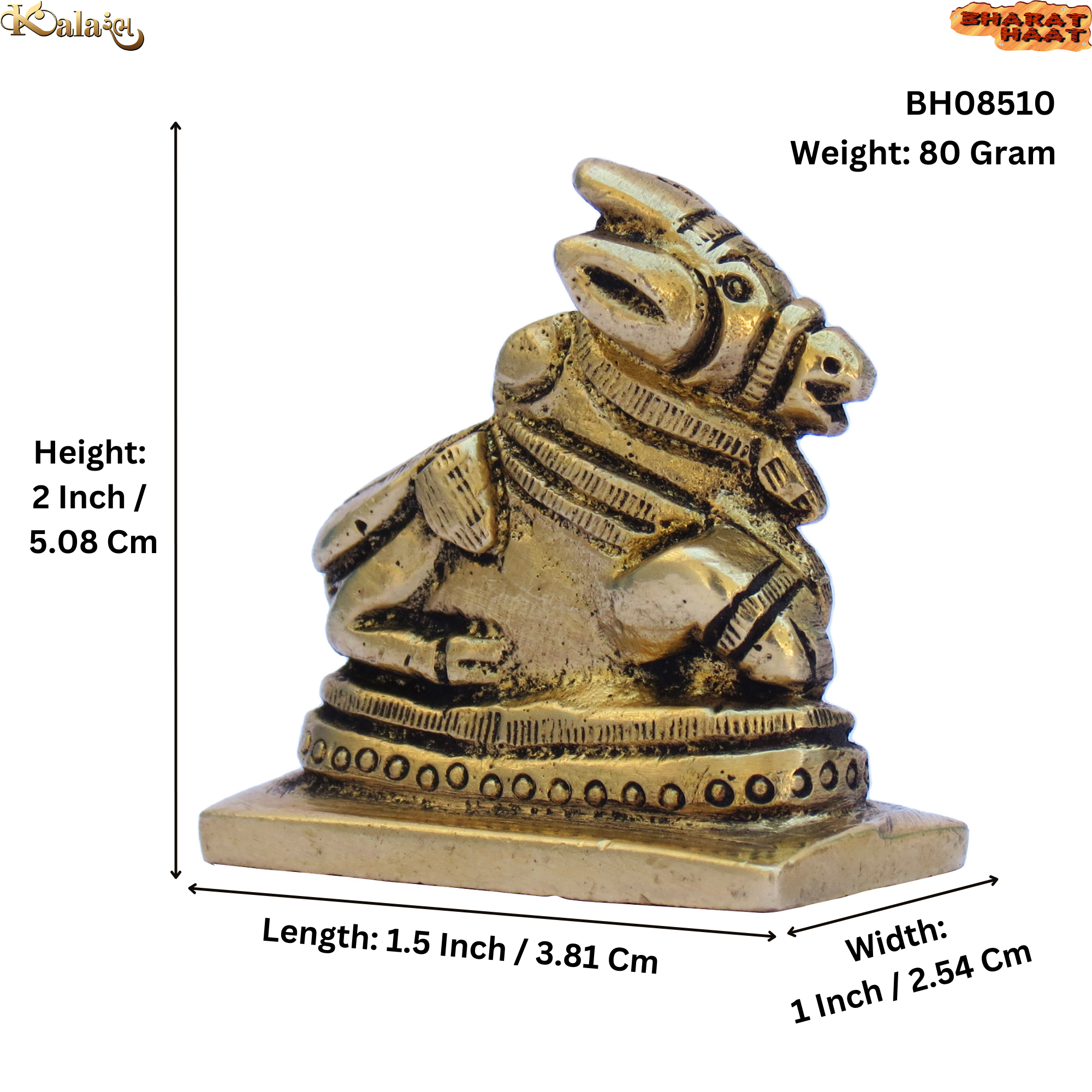 This charming Brass Nandi statue depicts Lord Shiva’s sacred vehicle in a detailed compact design. Made from high-quality brass, it measures 2 inches in height and weighs 80 grams, perfect for small home temples, shelves, or as a spiritual gift.
