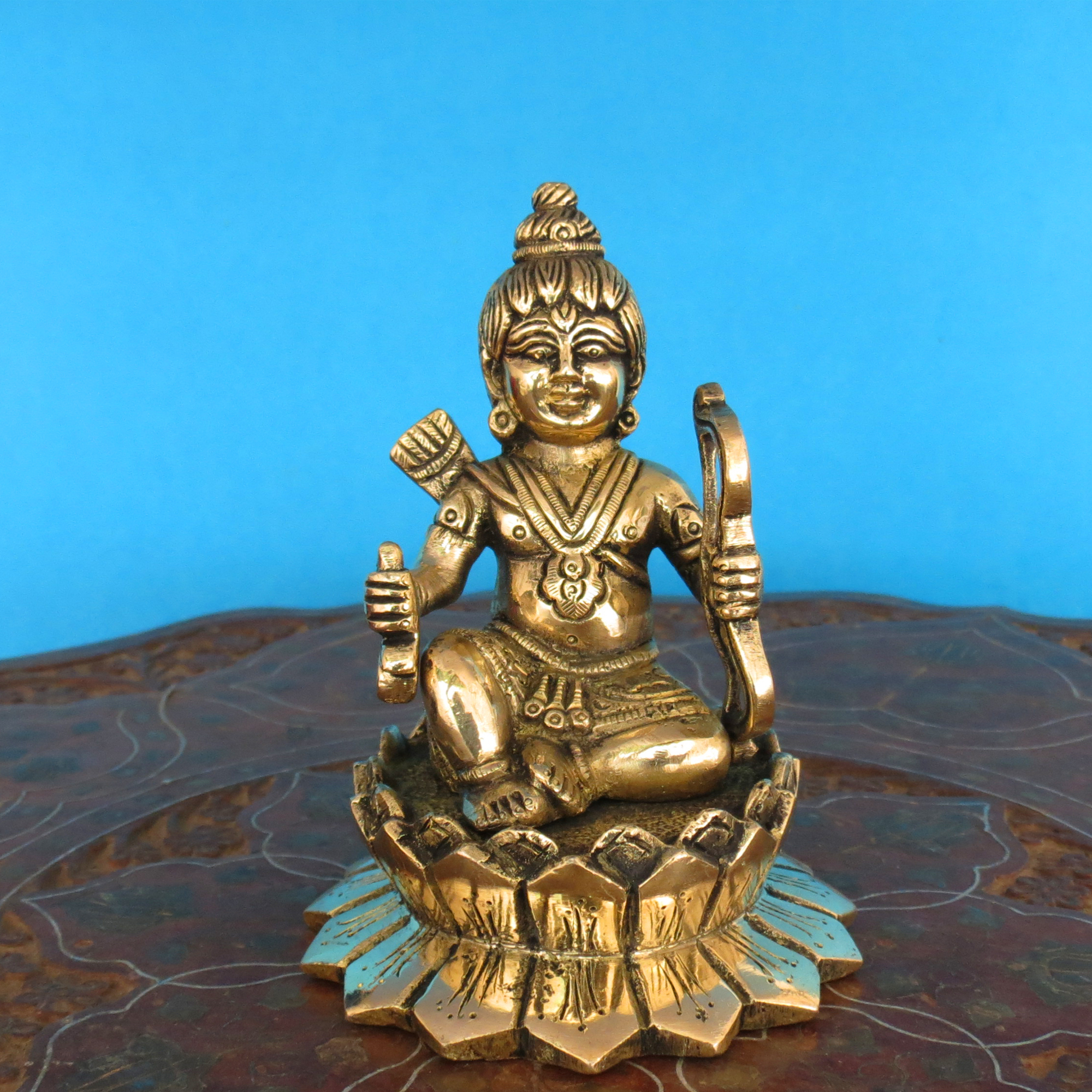 This charming Brass Lord Bal Ram Lalla statue depicts baby Lord Ram in intricate detail. Crafted from high-quality solid brass, it stands 5 inches tall and weighs 1.24 kg, making it perfect for home temples, shelves, or as a spiritual gift.