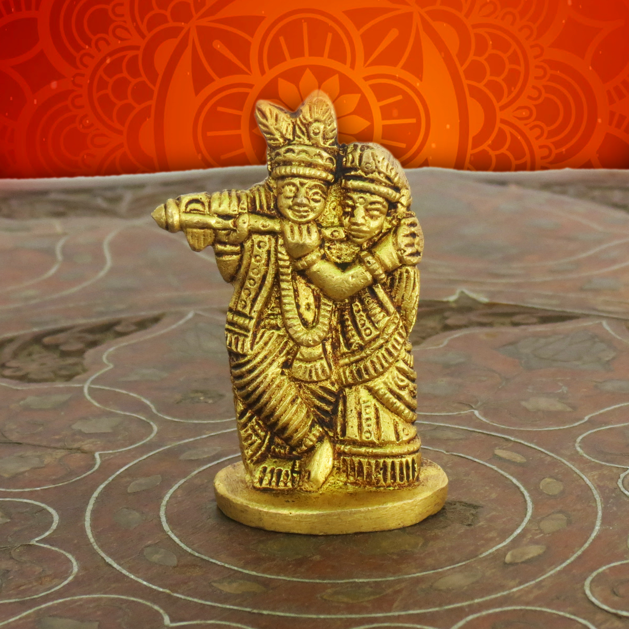 This charming Brass Radha & Krishna small idol depicts the divine couple in intricate detail. Crafted from high-quality solid brass, it stands 2.2 inches tall and weighs 120 grams, perfect for home temples, shelves, or as a spiritual gift.