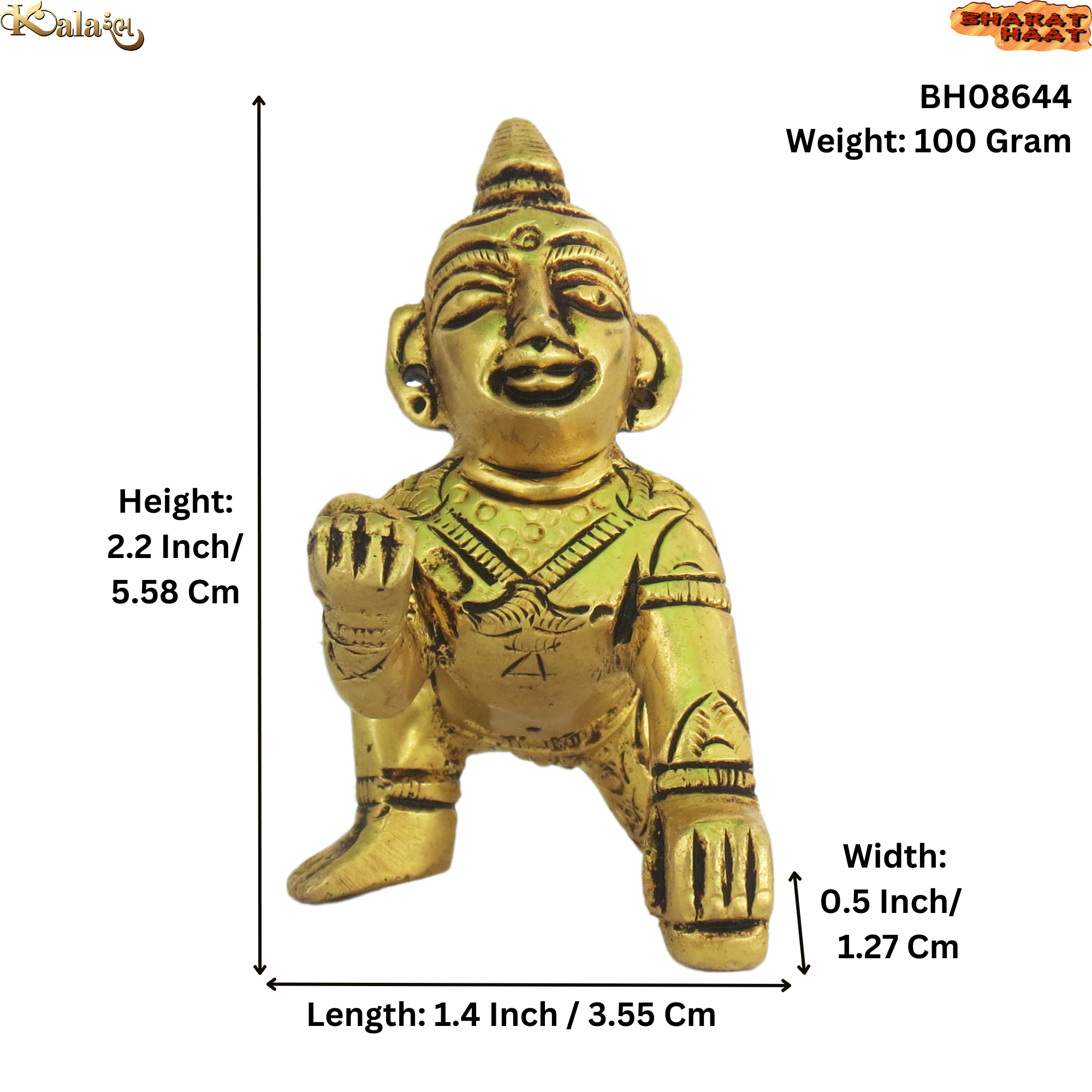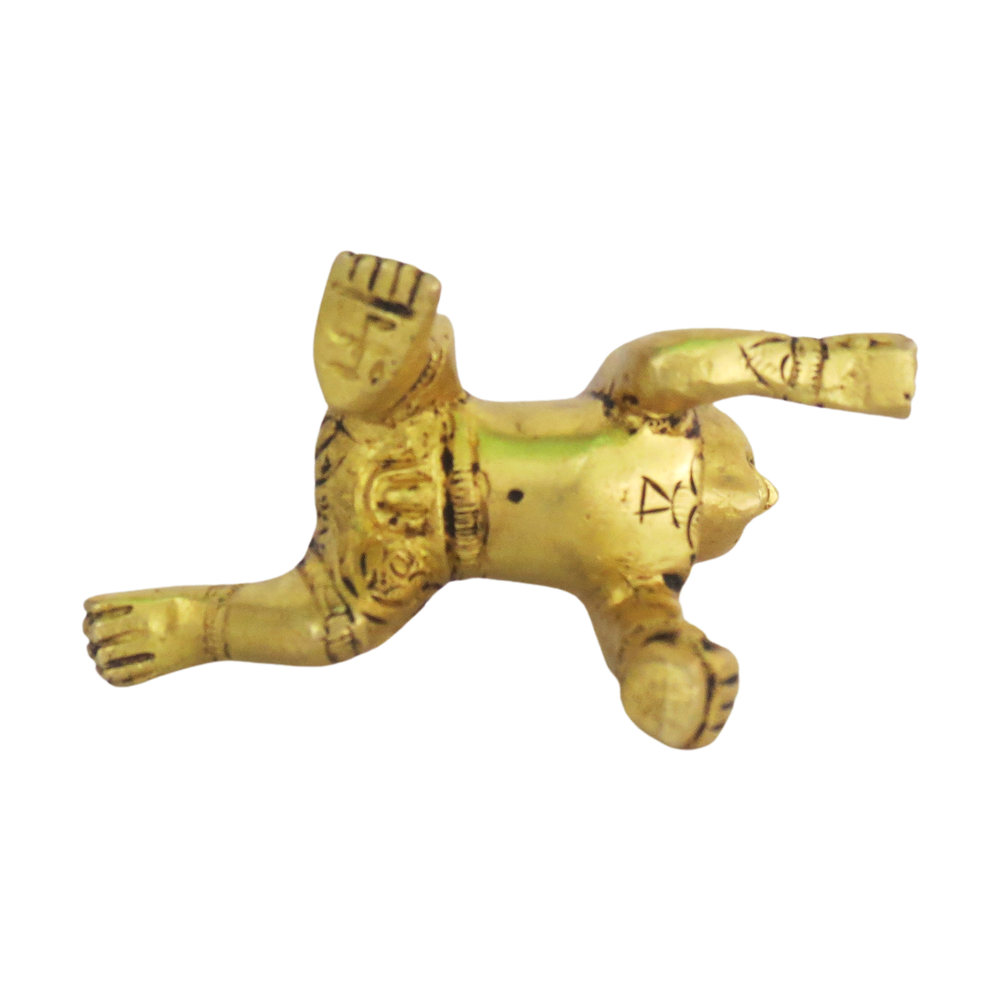 This charming Brass Lalo / Bal Gopal idol depicts baby Lord Krishna in intricate detail. Crafted from high-quality solid brass, it stands 2.2 inches tall and weighs 100 grams, perfect for home temples, shelves, or as a spiritual gift.