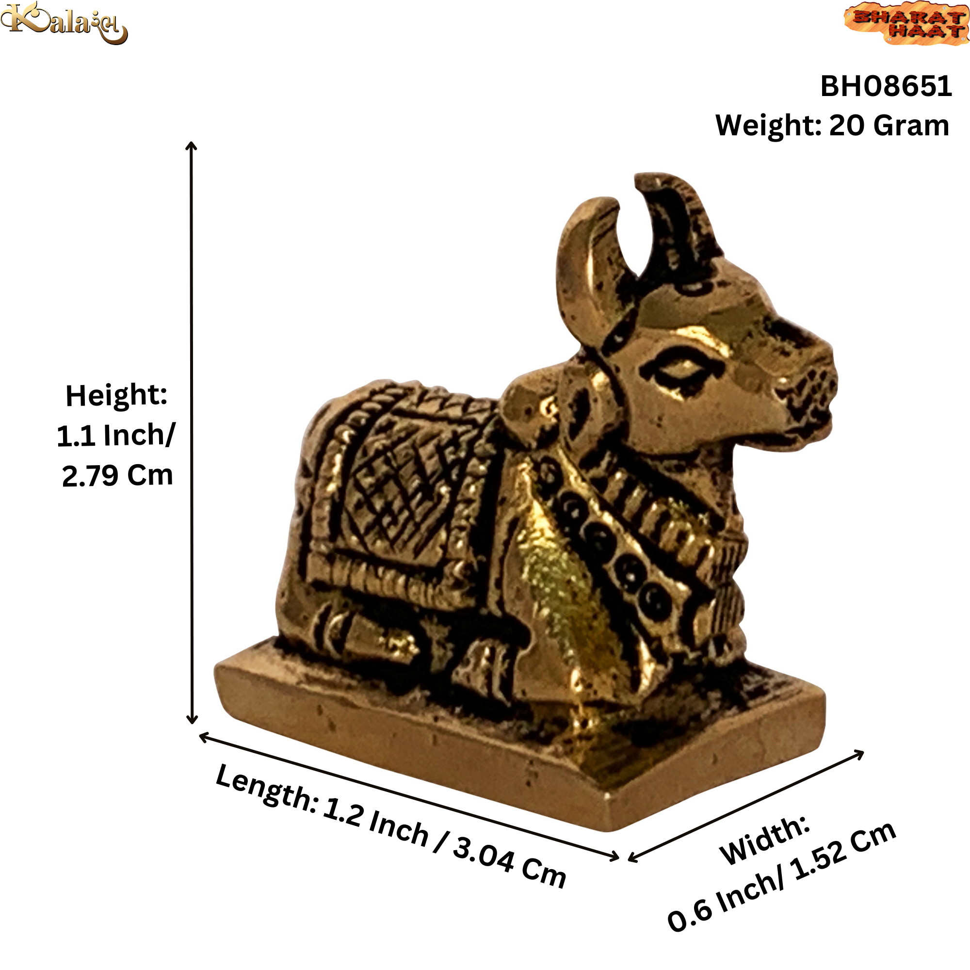 Design: Tiny Nandi bull figurine, representing Lord Shiva’s sacred vehicle and spiritual devotion