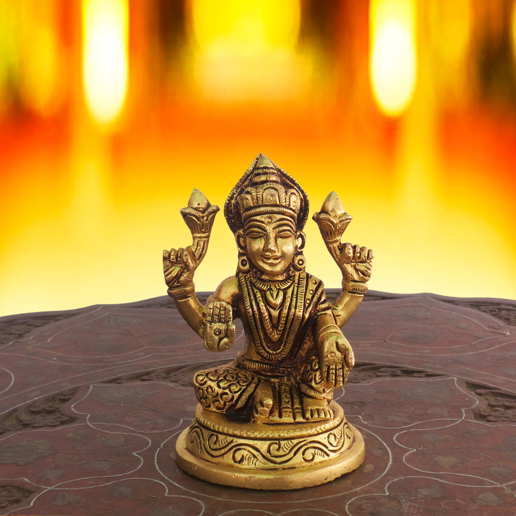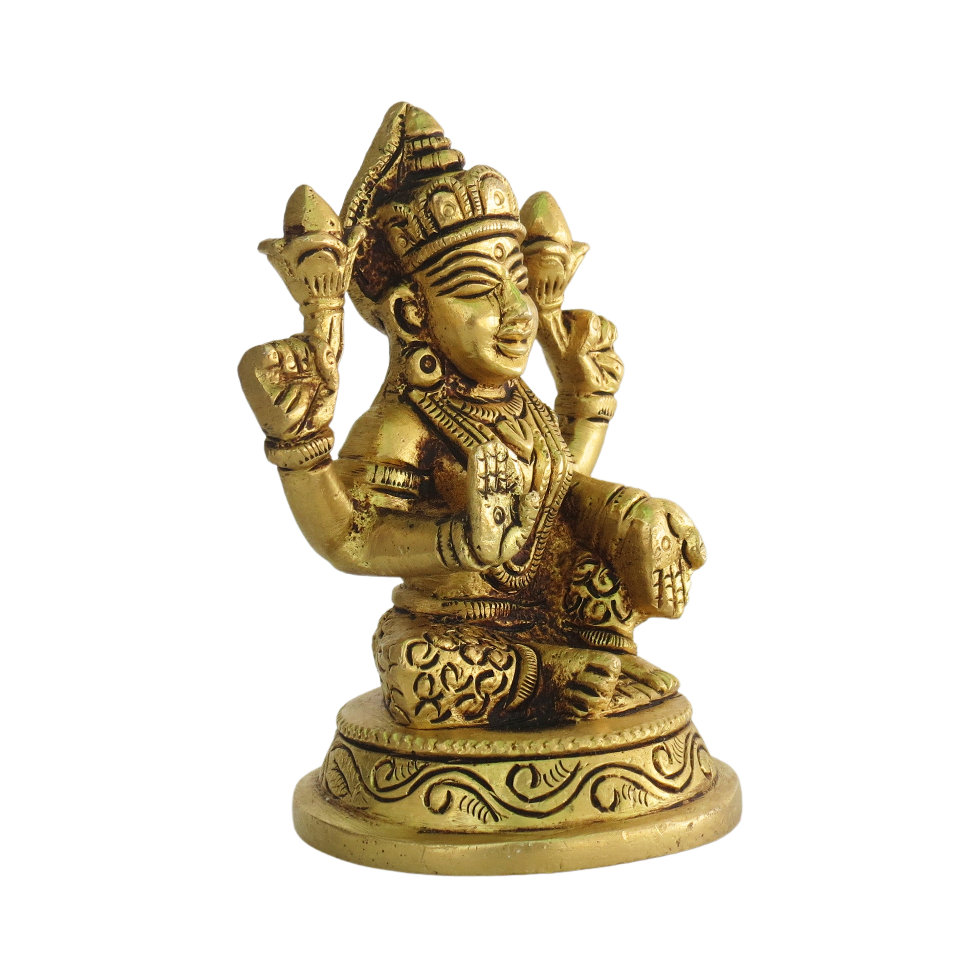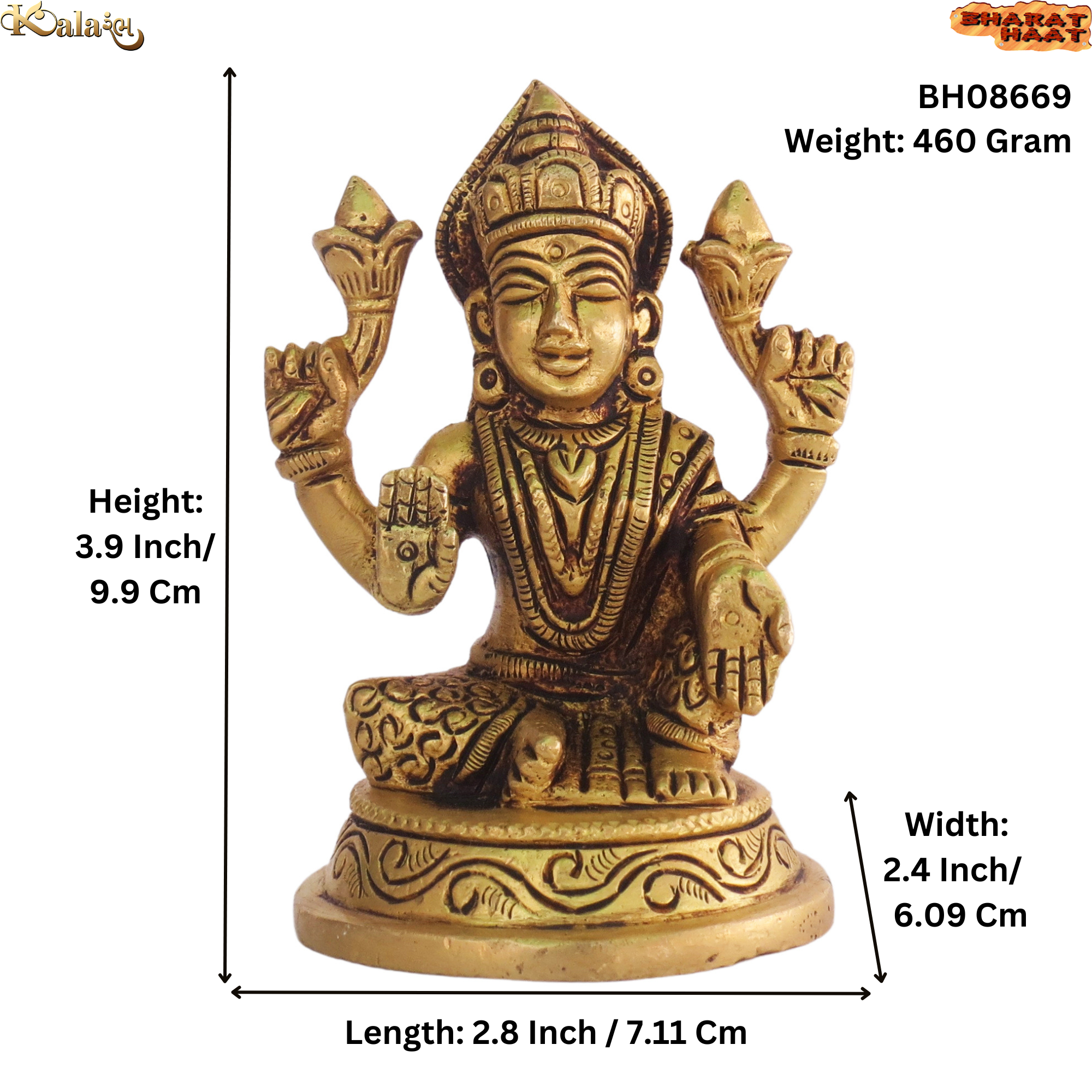 This elegant Brass Laxmi idol depicts Goddess Laxmi in exquisite detail. Crafted from high-quality solid brass, it stands 3.9 inches tall and weighs 460 grams, perfect for home temples, shelves, or as a spiritual gift.