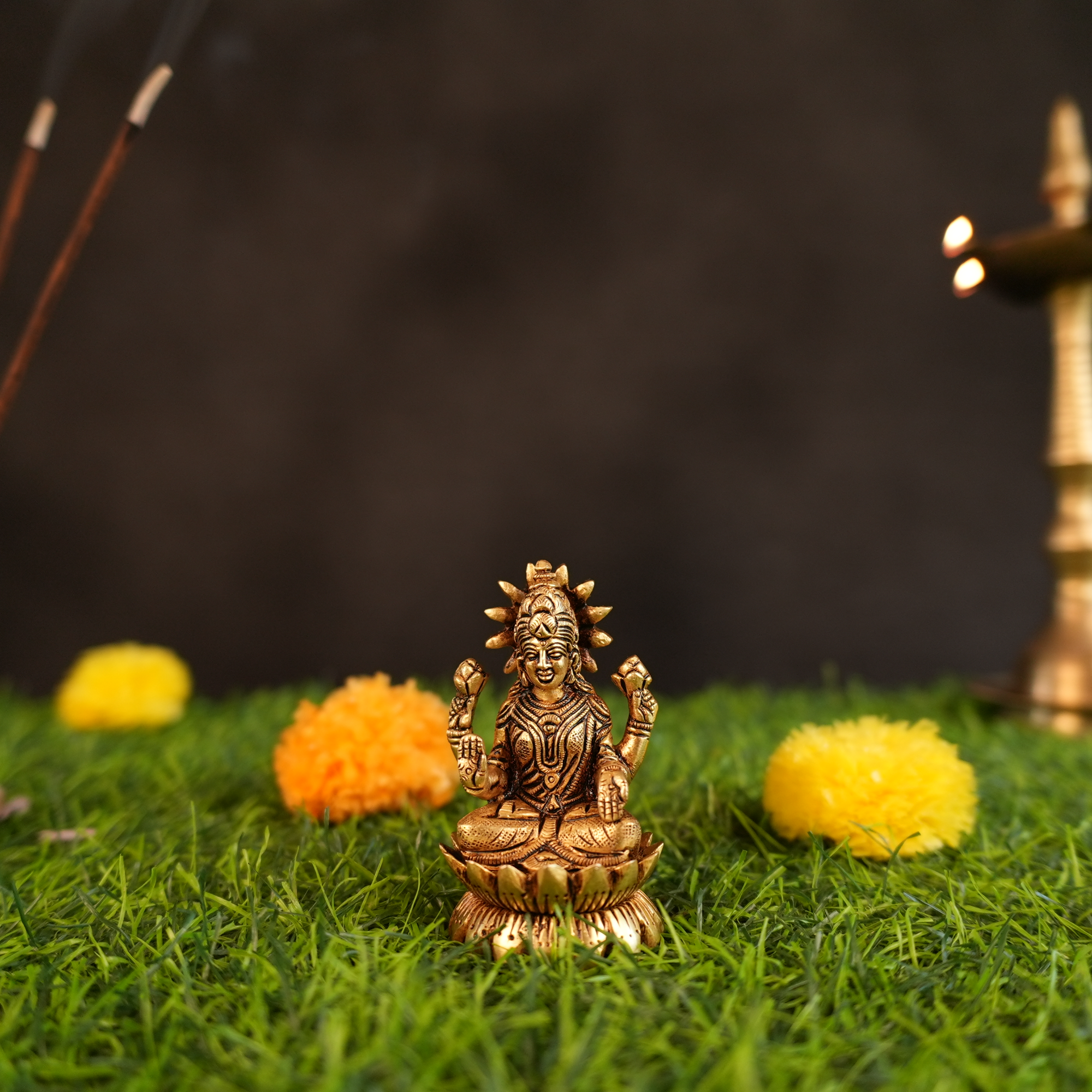 Elegant Brass Lakshmi statue, 1 Pc, size 2 x 2 x 3.5 Inch, 408g. Ideal for home altars, shelves, or as a thoughtful gift.
