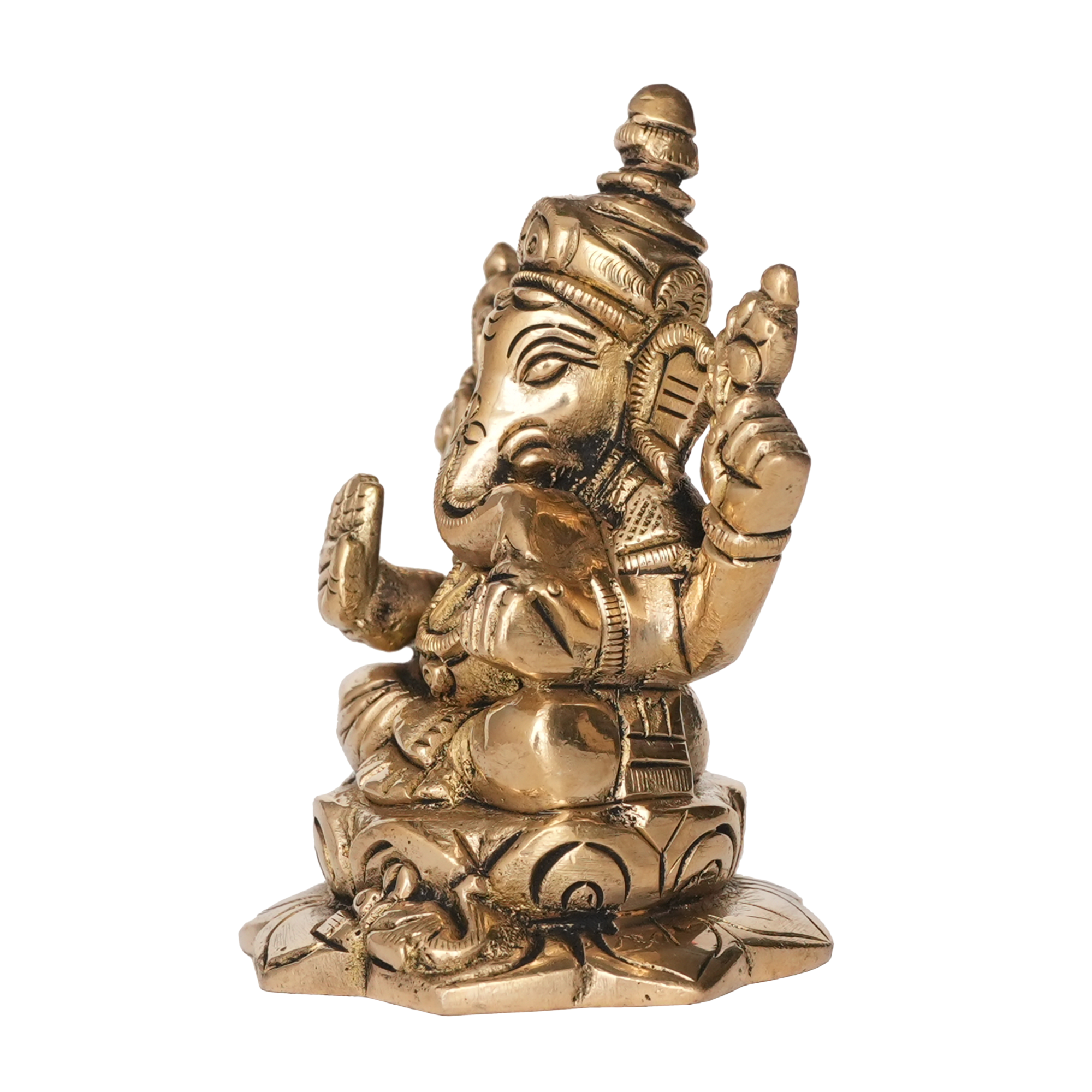Elegant Brass Ganesha statue, 1 Pc, size 2 x 2 x 2.9 Inch, 275g. Ideal for home altars, shelves, or as a thoughtful gift for devotees.