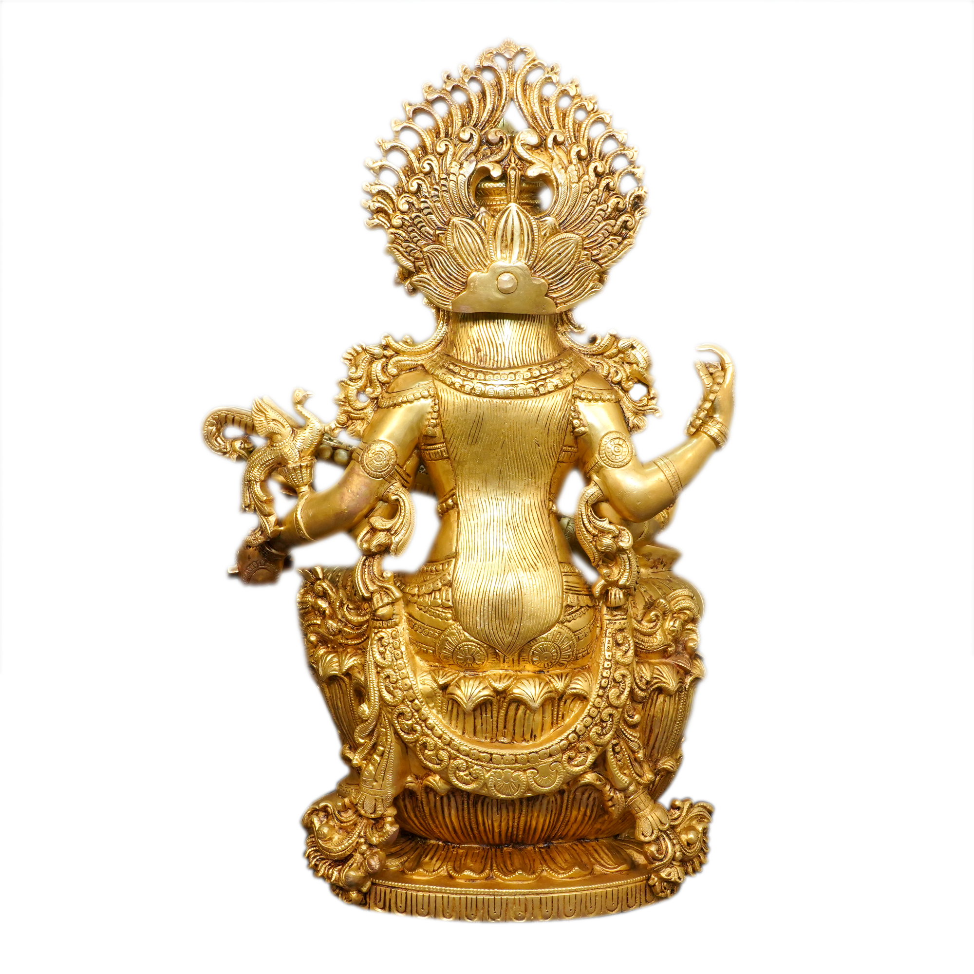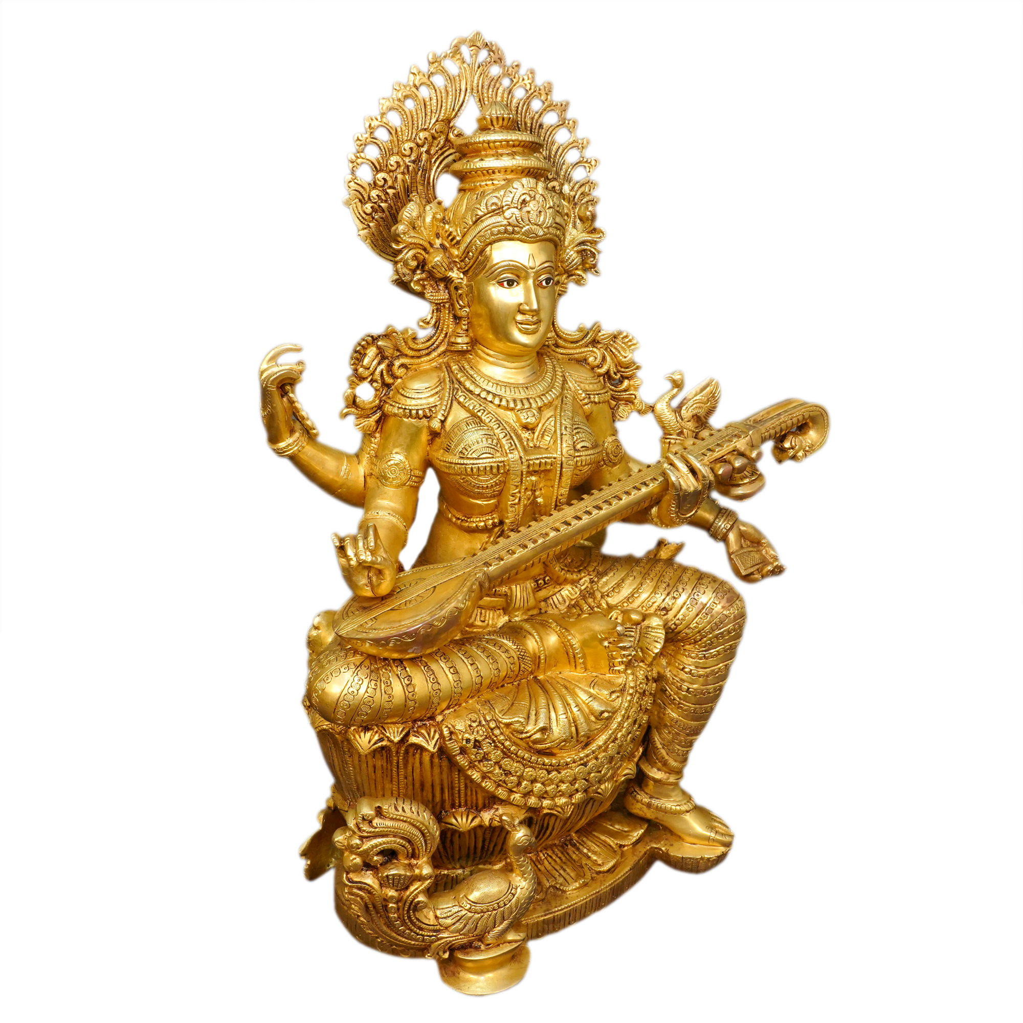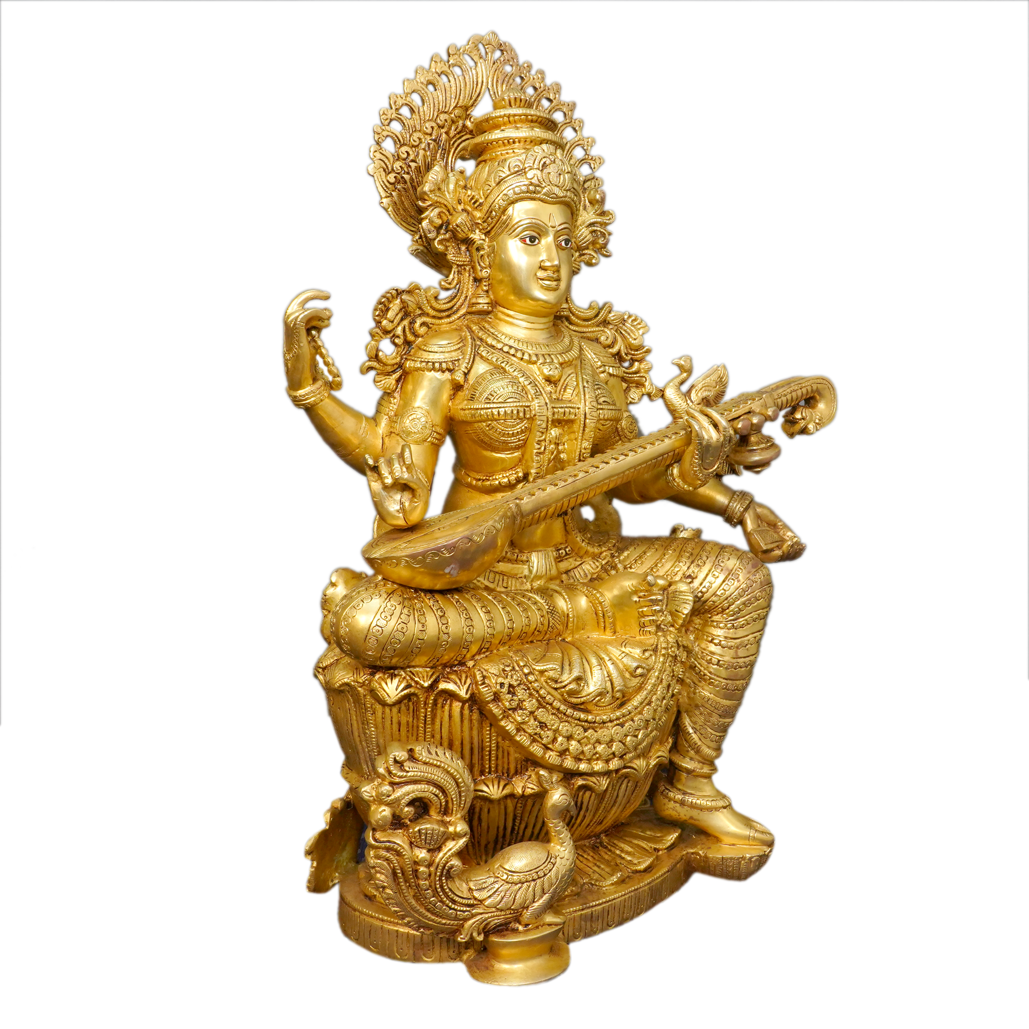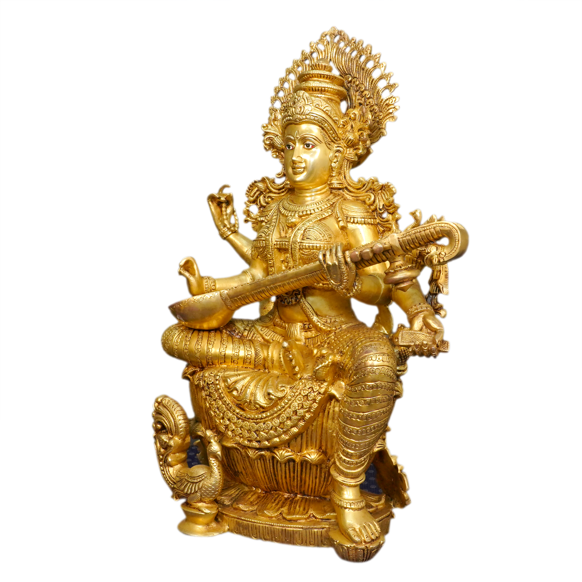 Grand Brass Saraswati statue, 1 Pc, size 15 x 8 x 24.2 Inch, 32.84 Kg. Perfect for home altars, large spaces, or as a devotional centerpiece.