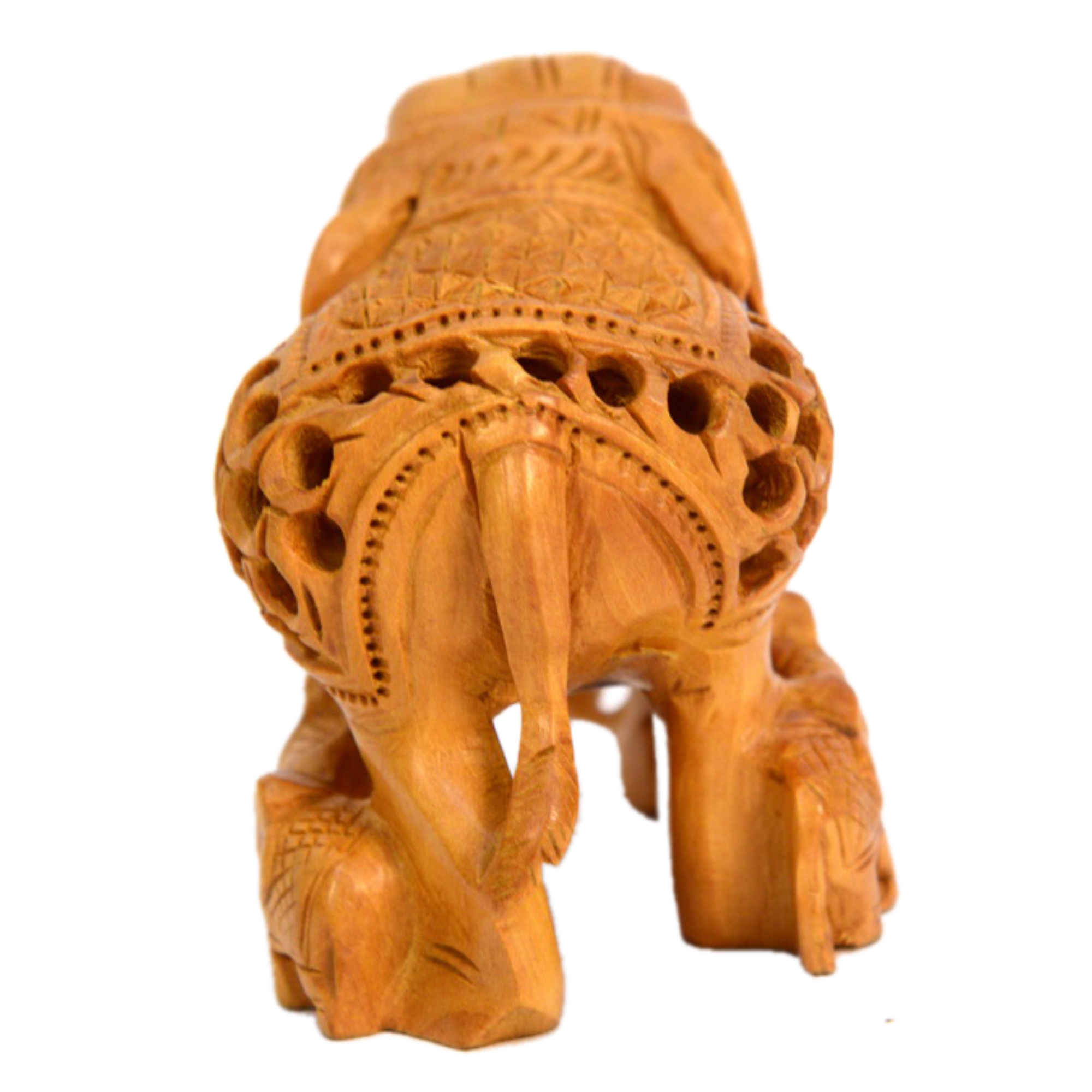 Handcrafted Wooden Elephant Family Statue (Small) | Miniature Elephant Family Figurine | Indian Wooden Home Décor
