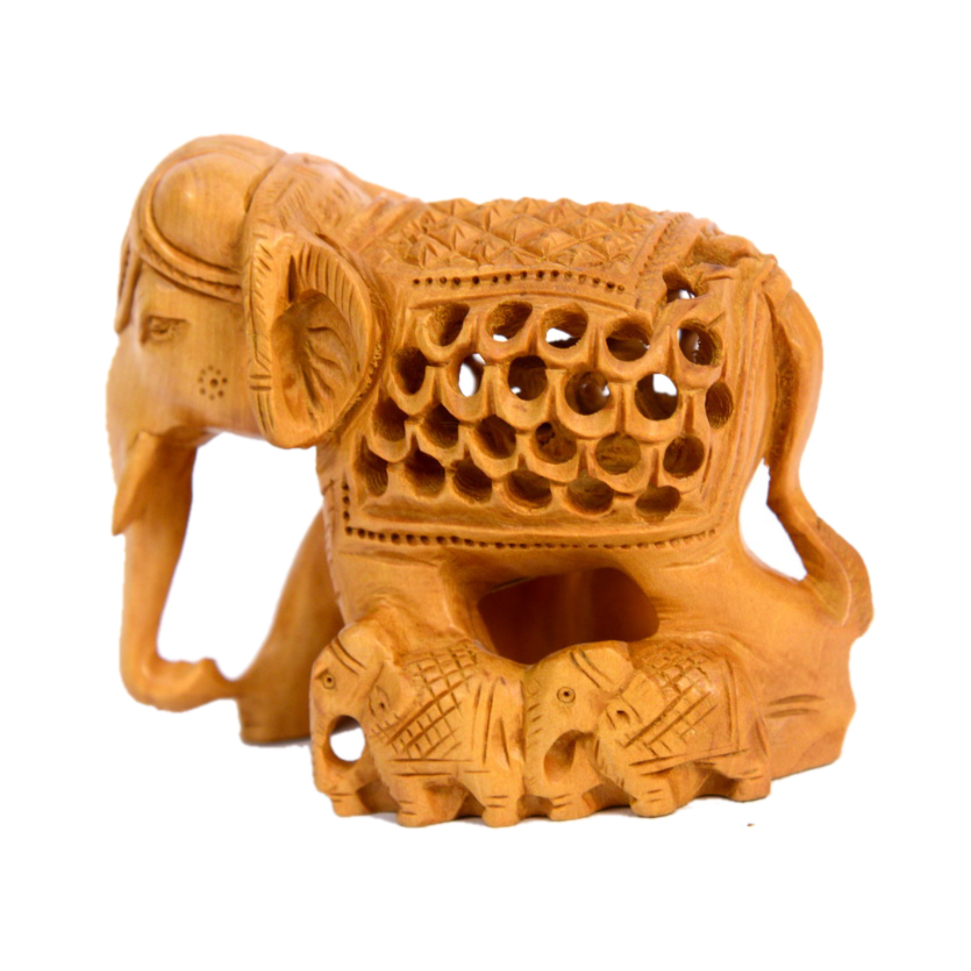 Celebrate the essence of togetherness and traditional artistry with this Handcrafted Wooden Elephant Family Statue (Small). Expertly carved by skilled Indian artisans, this miniature figurine beautifully depicts an elephant family, symbolizing prosperity, protection, and harmony.