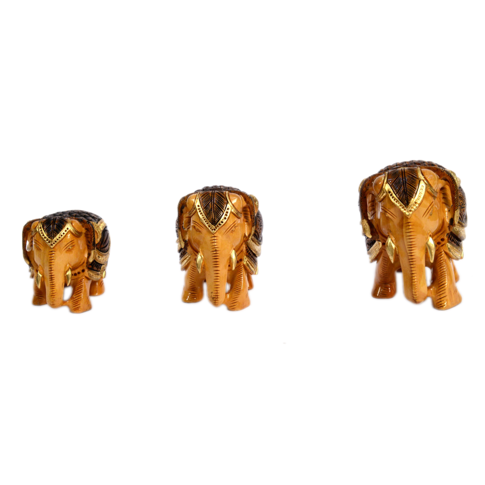 Product Type: Wooden & Golden Painted Elephant Set (3 Pieces)