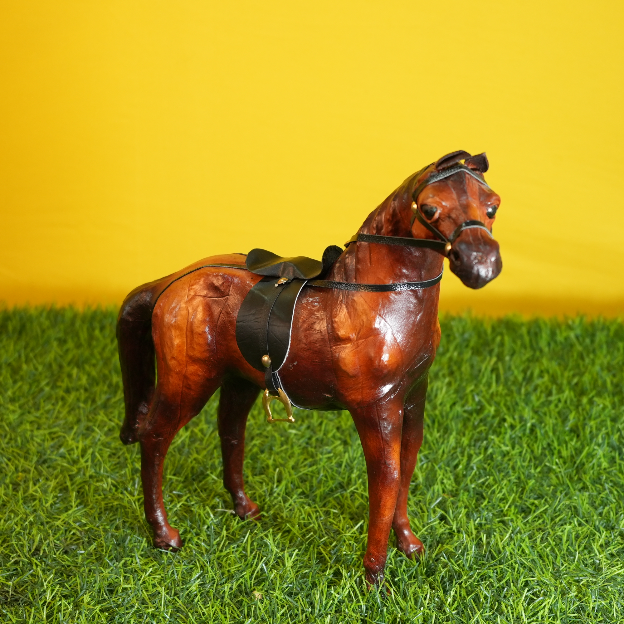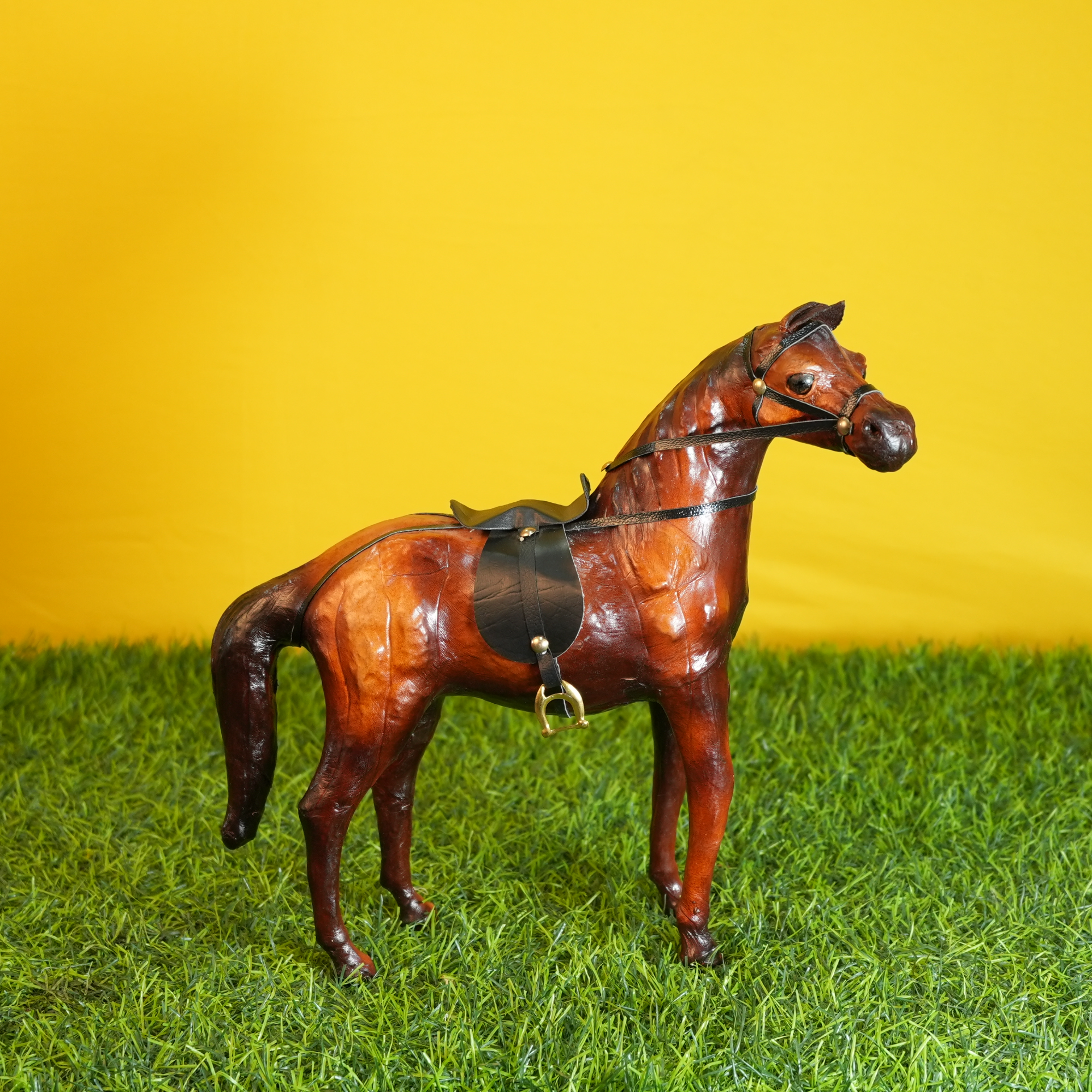 Add an element of elegance and strength to your décor with this Handcrafted Leather Horse Statue, meticulously created by skilled Indian artisans. Made from premium-quality leather, this figurine features realistic detailing, hand-molded structure, and beautifully painted craftsmanship that brings the horse to life.