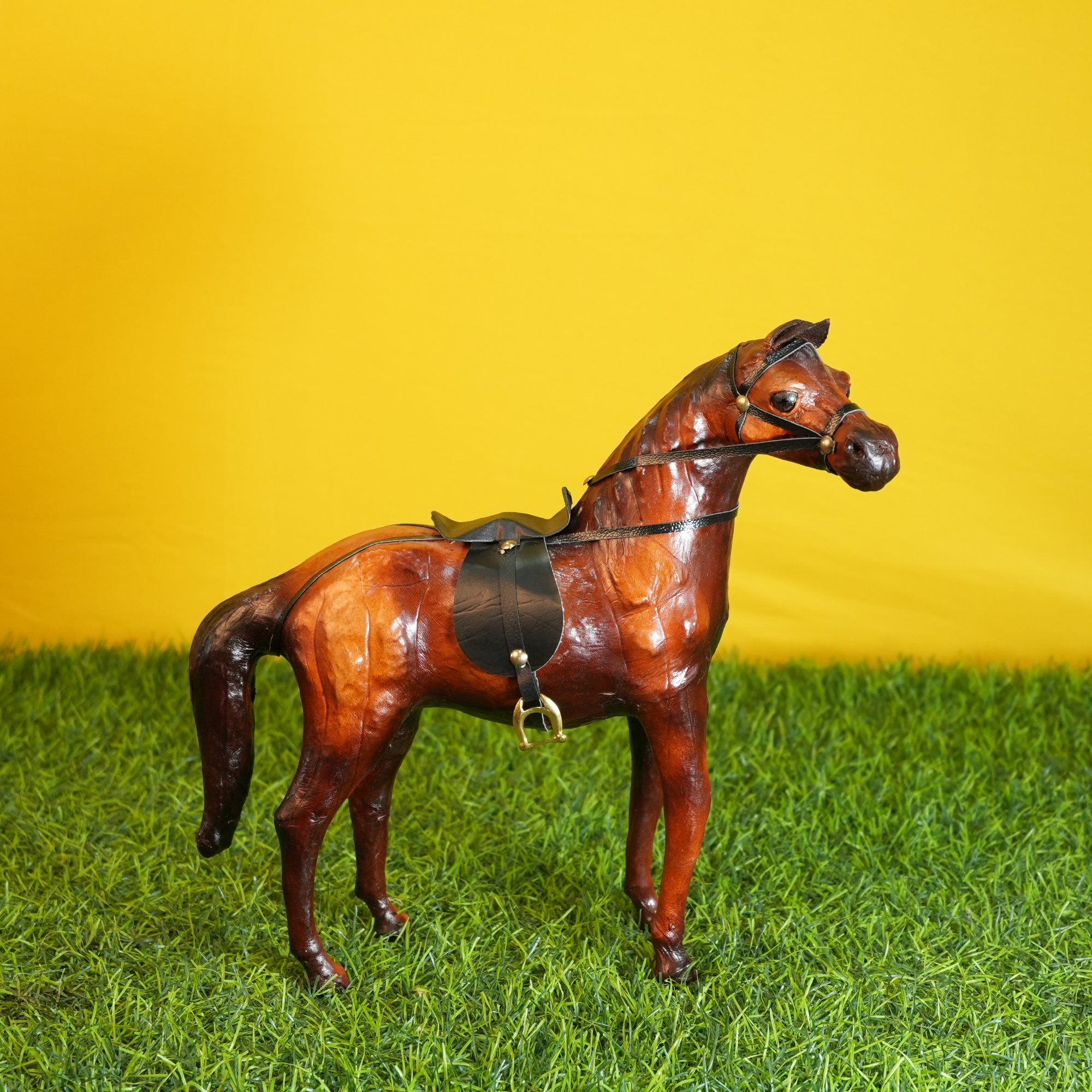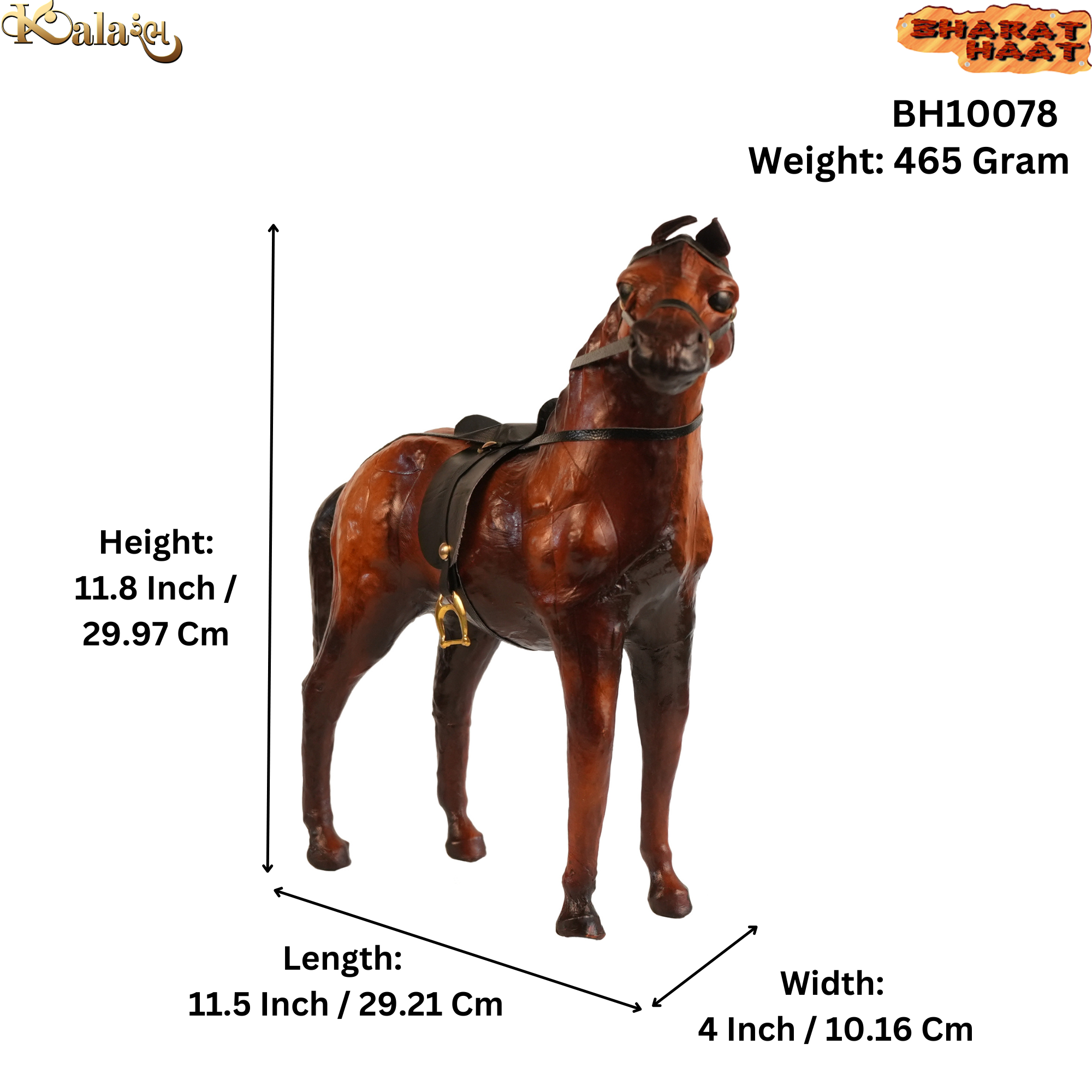 Handcrafted Leather Horse Statue – 11.8 Inch Traditional Decorative Animal Showpiece (1 Pc)