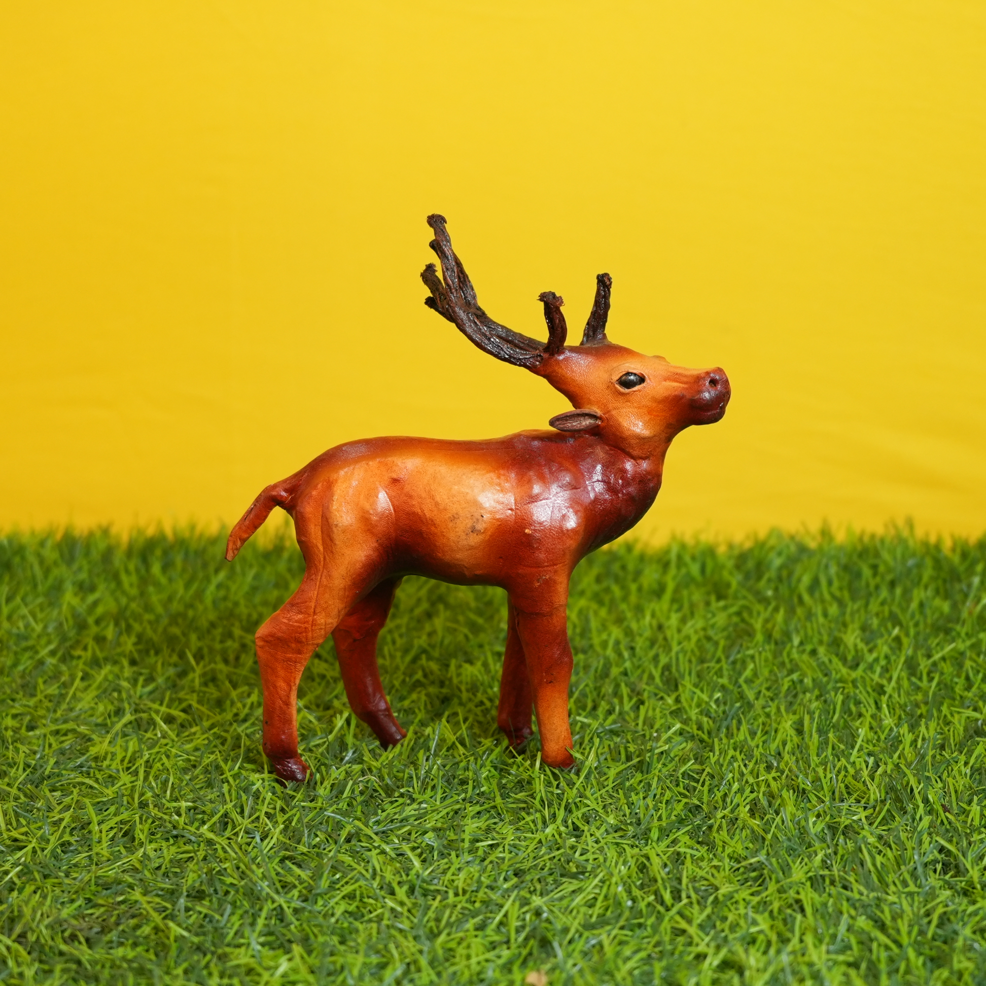 Handcrafted Leather Deer Showpiece – Natural Finish Decorative Figurine (7 Inch)