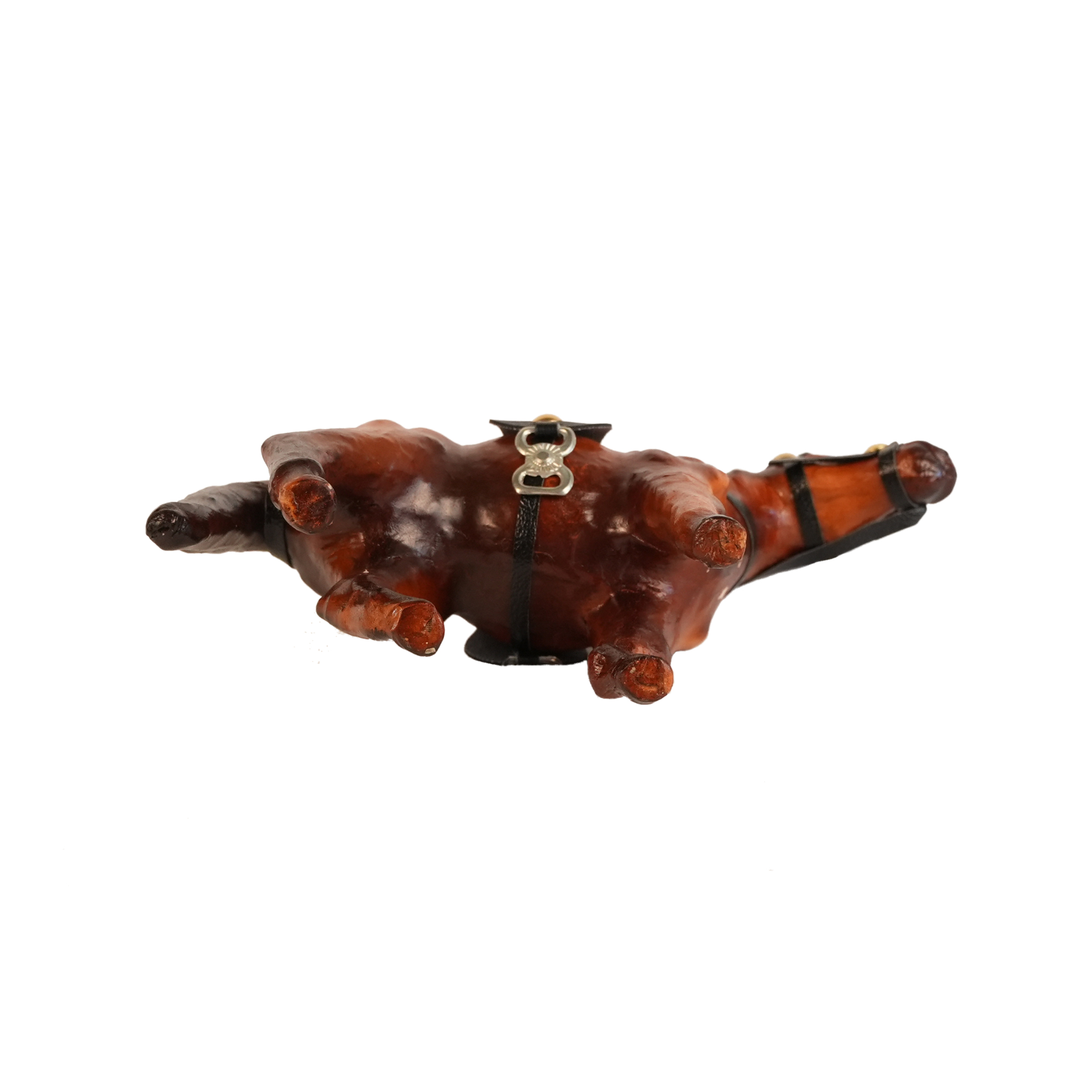 Add a touch of artistic elegance to your space with this Handcrafted Leather Horse Showpiece. Made by skilled Indian artisans, this leather figurine showcases remarkable craftsmanship with a realistic stance, smooth texture, and beautifully detailed features.