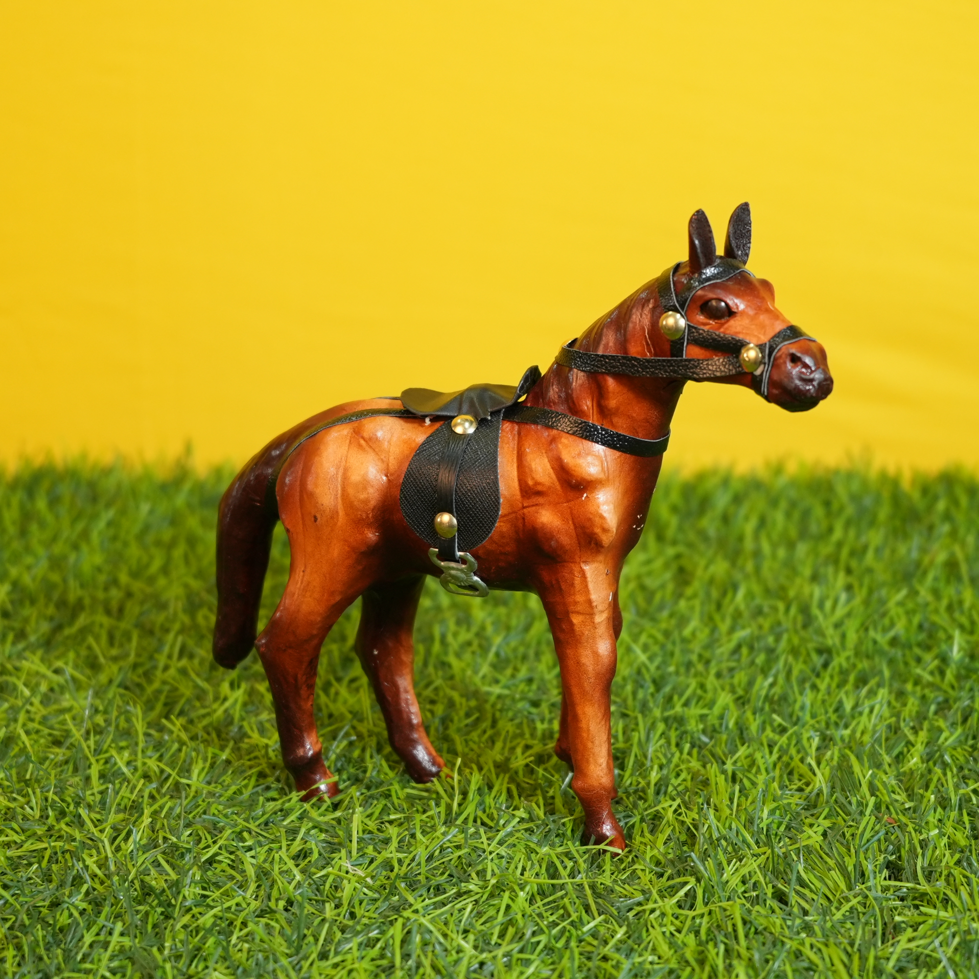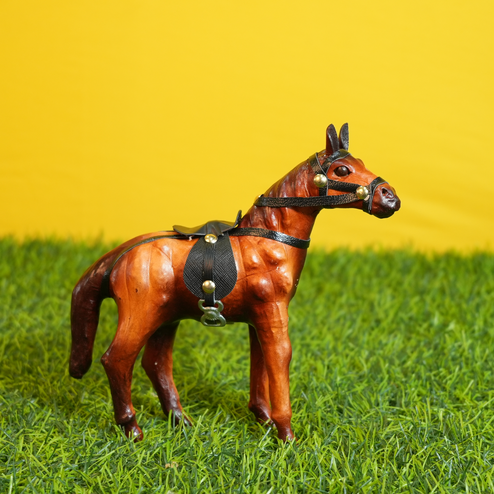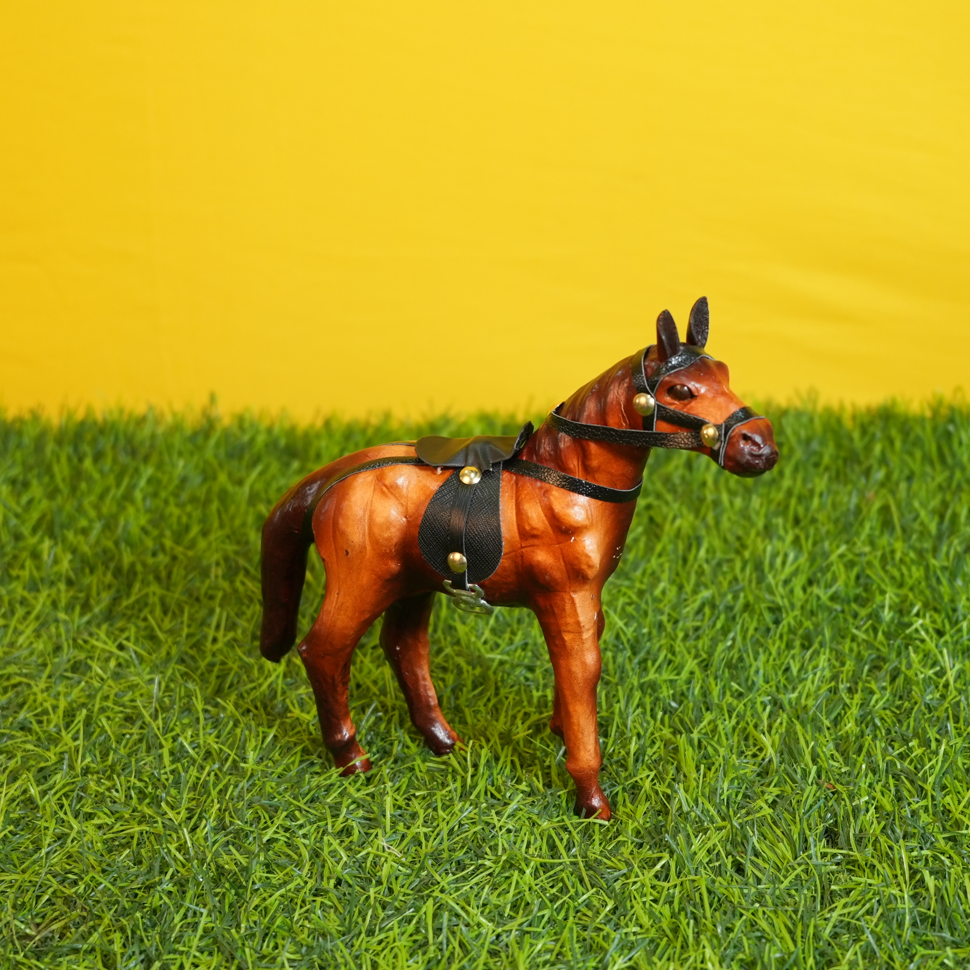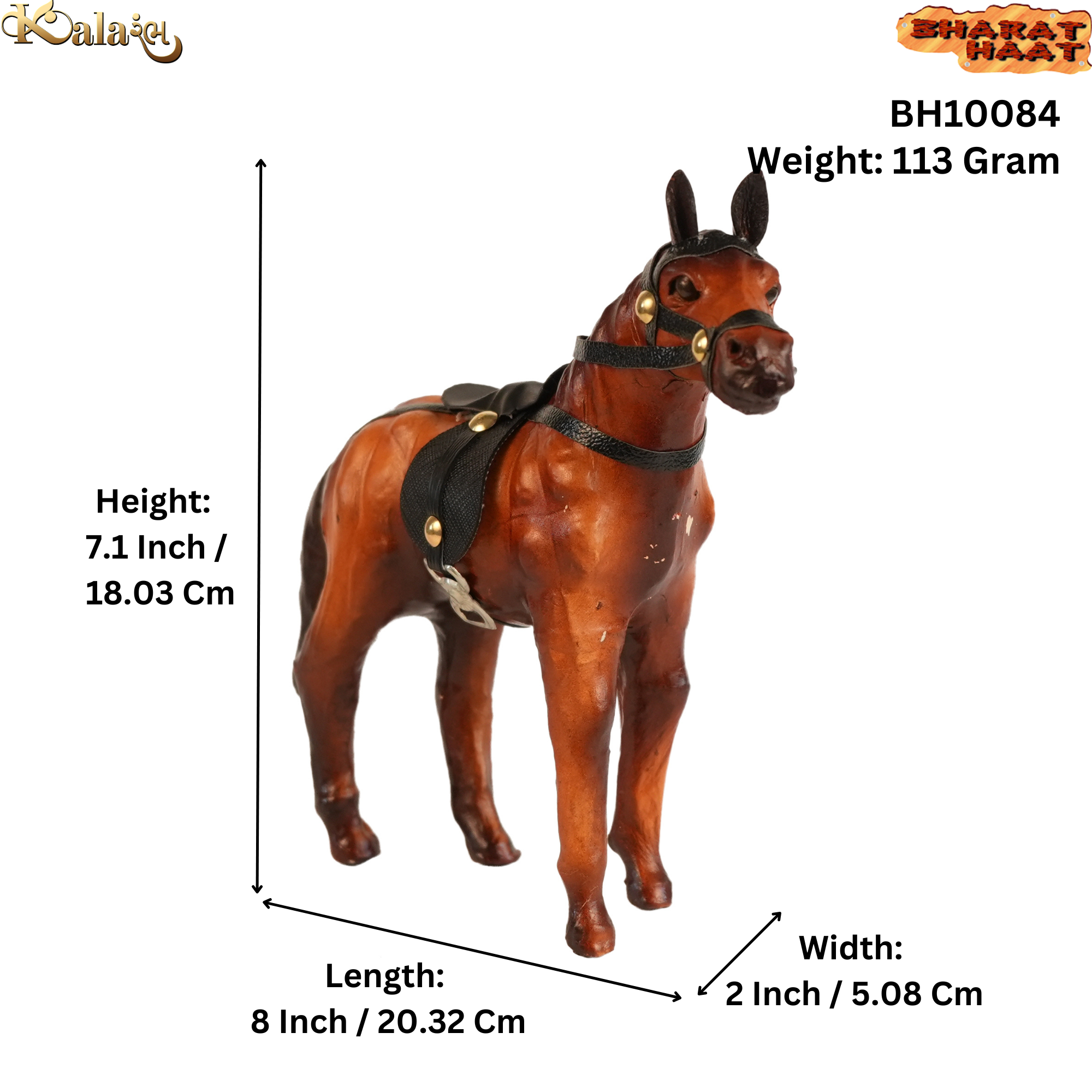Handcrafted Leather Horse Figurine – Traditional Animal Showpiece (8 Inch)