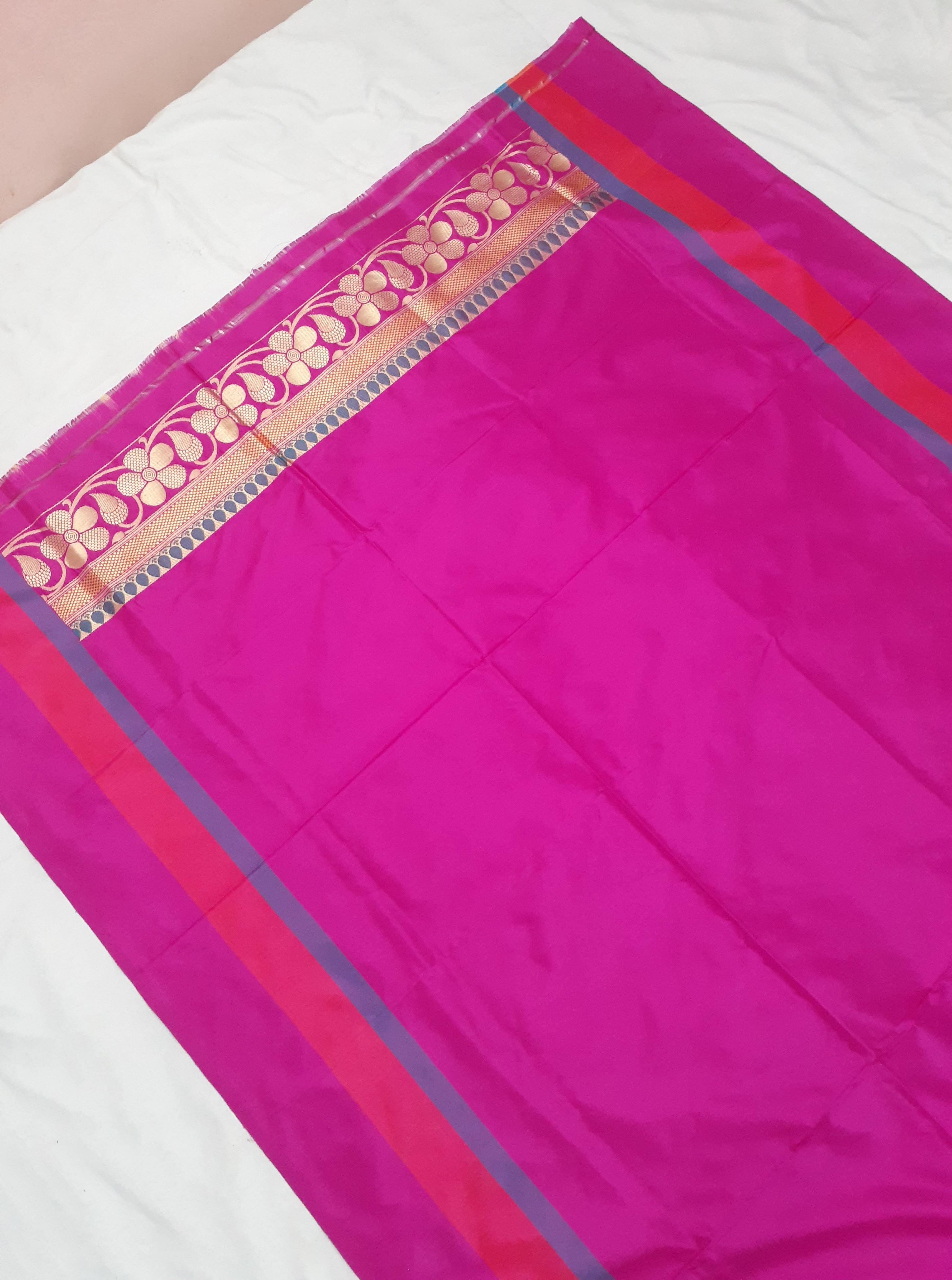 Banarasi silk and Silk saree malti colors border golden zari Buti Kairi plen blouse ➕ border patti 5.60 Miter saree 1 miter blouse