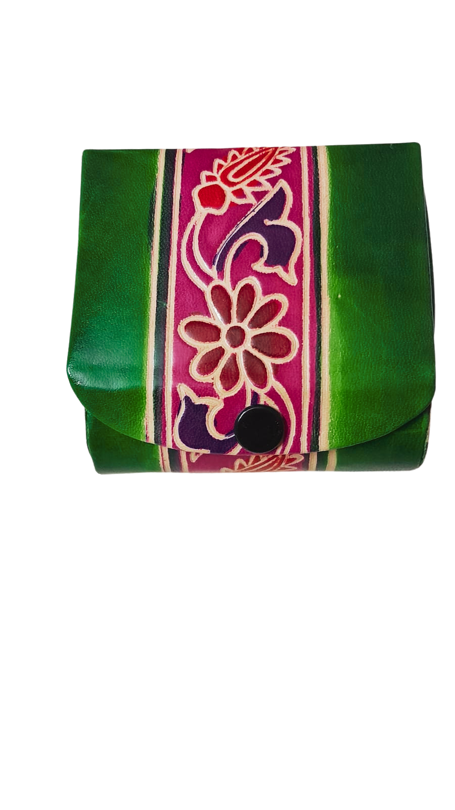 This case is made from handpicked, high-quality leather, known for its durability and soft texture. It’s then brought to life with delicate hand-painted motifs inspired by India’s cultural designs, making each piece beautifully distinct. The compact mirror inside adds a practical touch for on-the-go elegance, making it a fusion of convenience and charm.