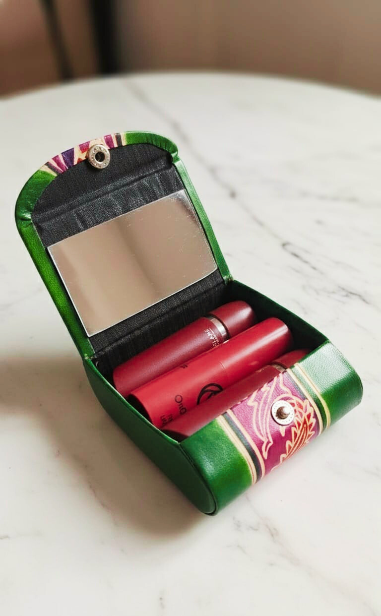 Handcrafted Leather Lipstick Case with Mirror for 3 Lipsticks