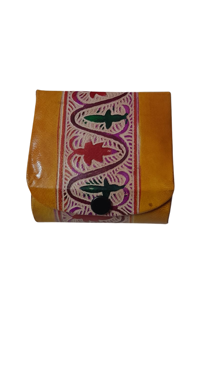 This case is made from handpicked, high-quality leather, known for its durability and soft texture. It’s then brought to life with delicate hand-painted motifs inspired by India’s cultural designs, making each piece beautifully distinct. The compact mirror inside adds a practical touch for on-the-go elegance, making it a fusion of convenience and charm.