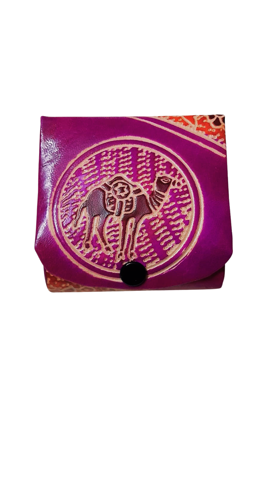 This case is made from handpicked, high-quality leather, known for its durability and soft texture. It’s then brought to life with delicate hand-painted motifs inspired by India’s cultural designs, making each piece beautifully distinct. The compact mirror inside adds a practical touch for on-the-go elegance, making it a fusion of convenience and charm.