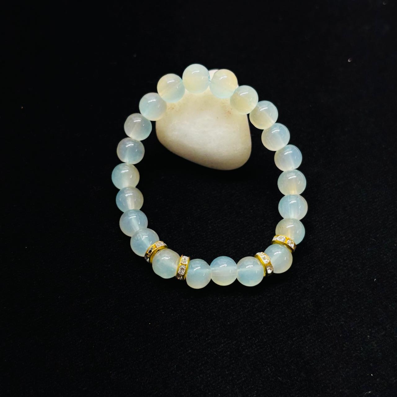 This handcrafted beaded stretch bracelet brings together a dual-tone elegance with its unique blend of soft pastel beads and shimmering gold-tone crystal spacers. The pastel beads add a subtle, feminine charm, while the gold accents create a refined, festive sparkle. Designed with a stretchable band, it ensures a secure and comfortable fit, making it perfect for all-day wear. A versatile piece, it transitions seamlessly from casual outfits to special occasions, offering both style and symbolism in one accessory.