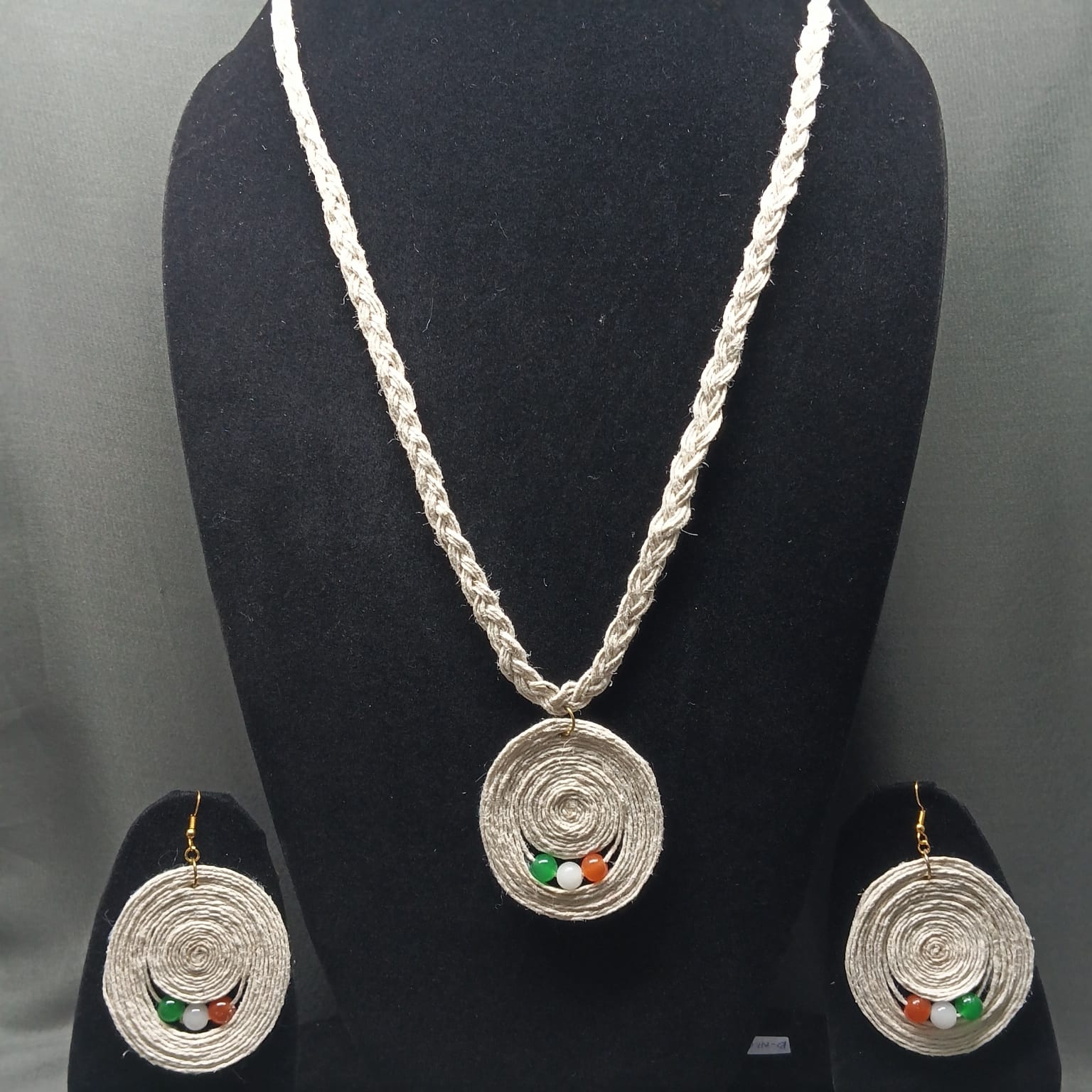 Handmade White Jute Jewelry Set: Includes a necklace with matching dangle earrings for women and girls.