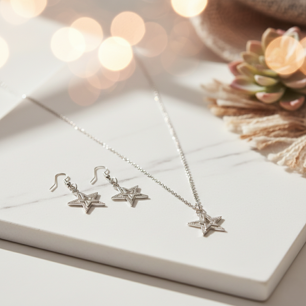 - Coordinated Jewelry Set – Includes matching star pendant necklace and dangle earrings