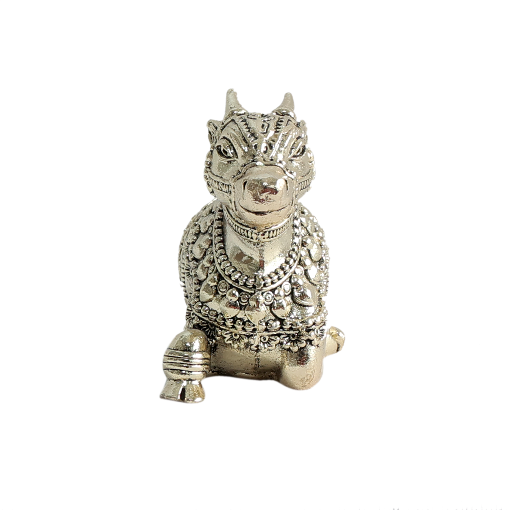 Made from high-quality solid brass, this Nandi statue features fine detailing and a traditional antique finish that enhances its spiritual look. Its compact size makes it perfect for home temple, pooja room or office desk.