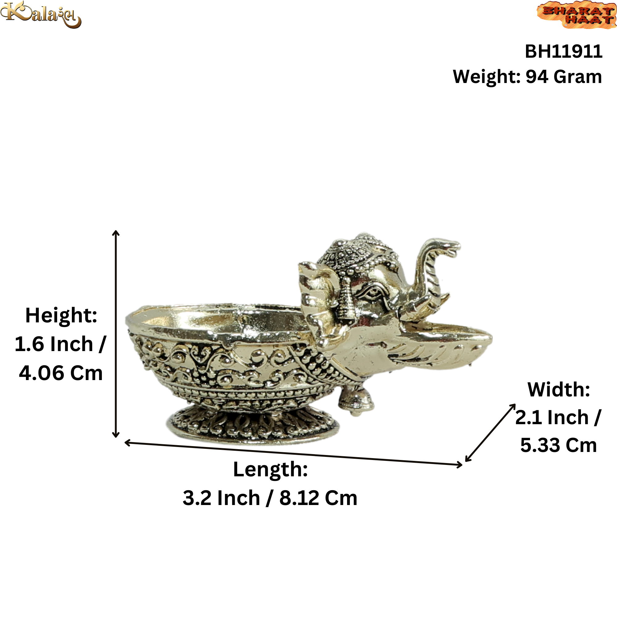 The elegant elephant-shaped design enhances the beauty of your home temple, living room, entrance or showcase. It is suitable for daily pooja, Diwali festival decoration, Navratri celebration, housewarming ceremony and spiritual gifting.