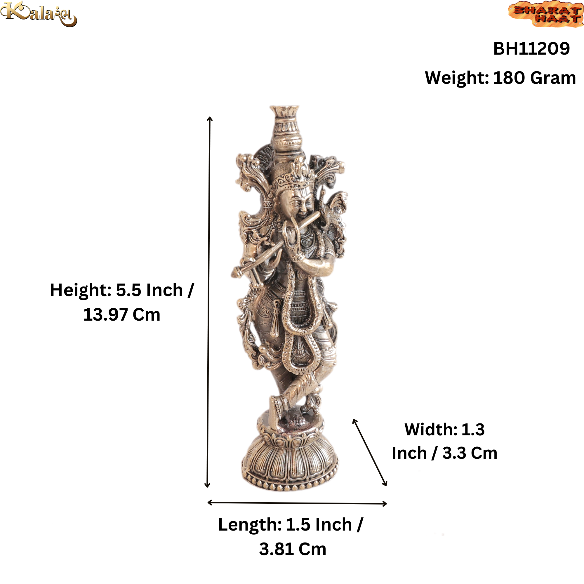 The statue measures 1.5 x 1.3 x 5.5 inches (3.81 x 3.3 x 13.97 cm), making it a perfect size for home temples, pooja rooms, spiritual corners and decorative spaces. With a weight of 180 grams, the idol is sturdy and stable while maintaining a compact and elegant design.