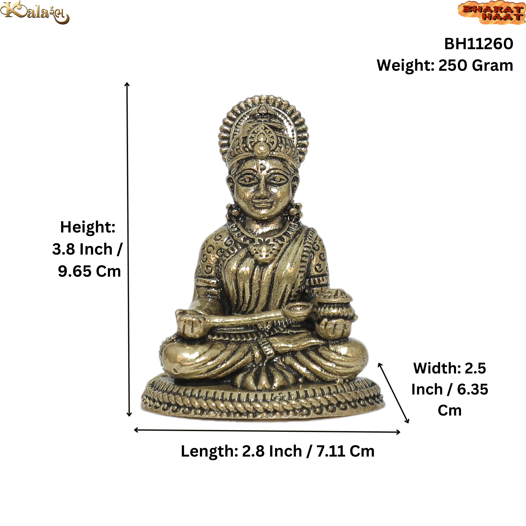 With its compact yet sturdy design, this Annapurna idol is perfect for placing in your home temple, pooja room, kitchen temple, office desk, meditation area or spiritual corner. The traditional antique brass finish enhances the beauty of the idol and gives it a timeless devotional appearance.