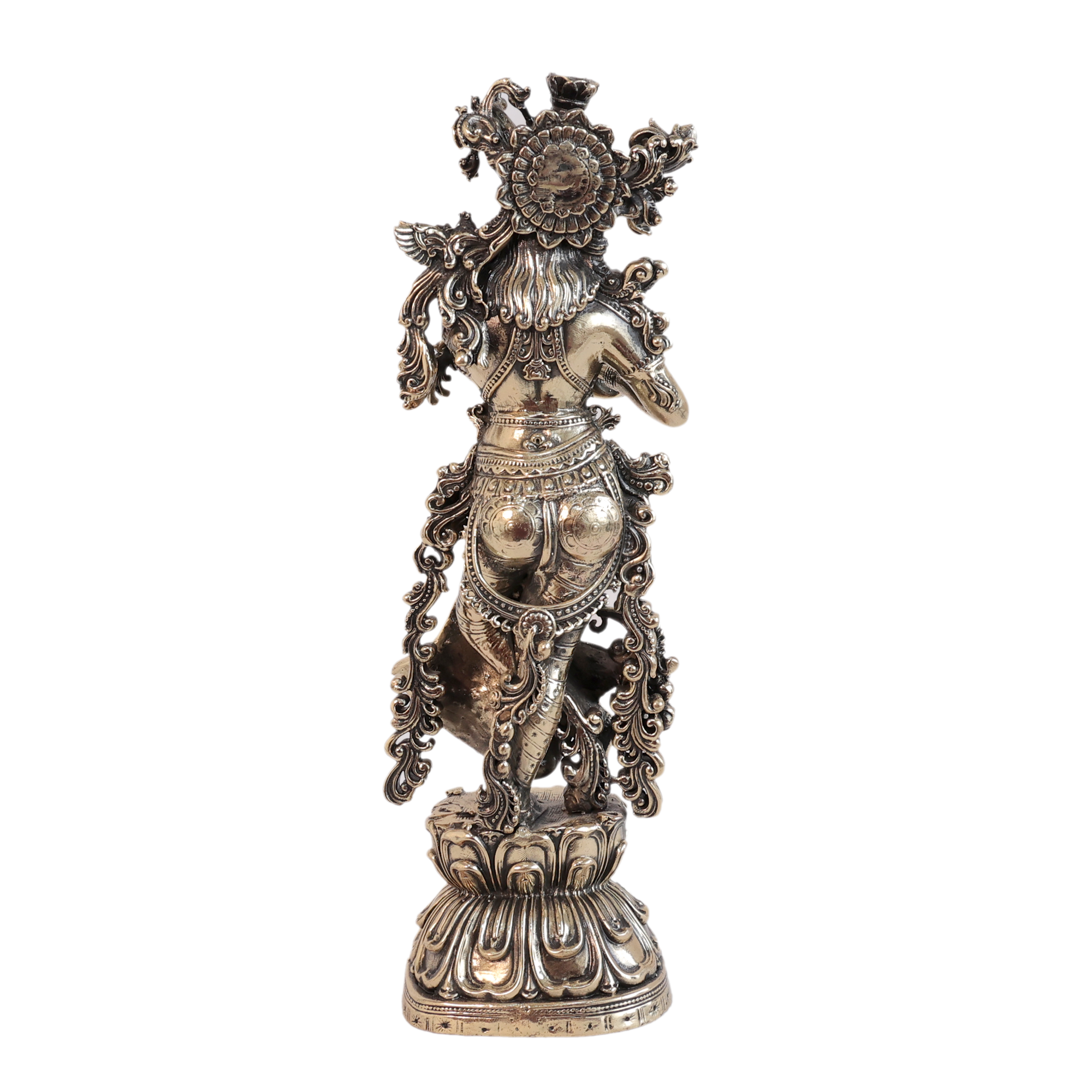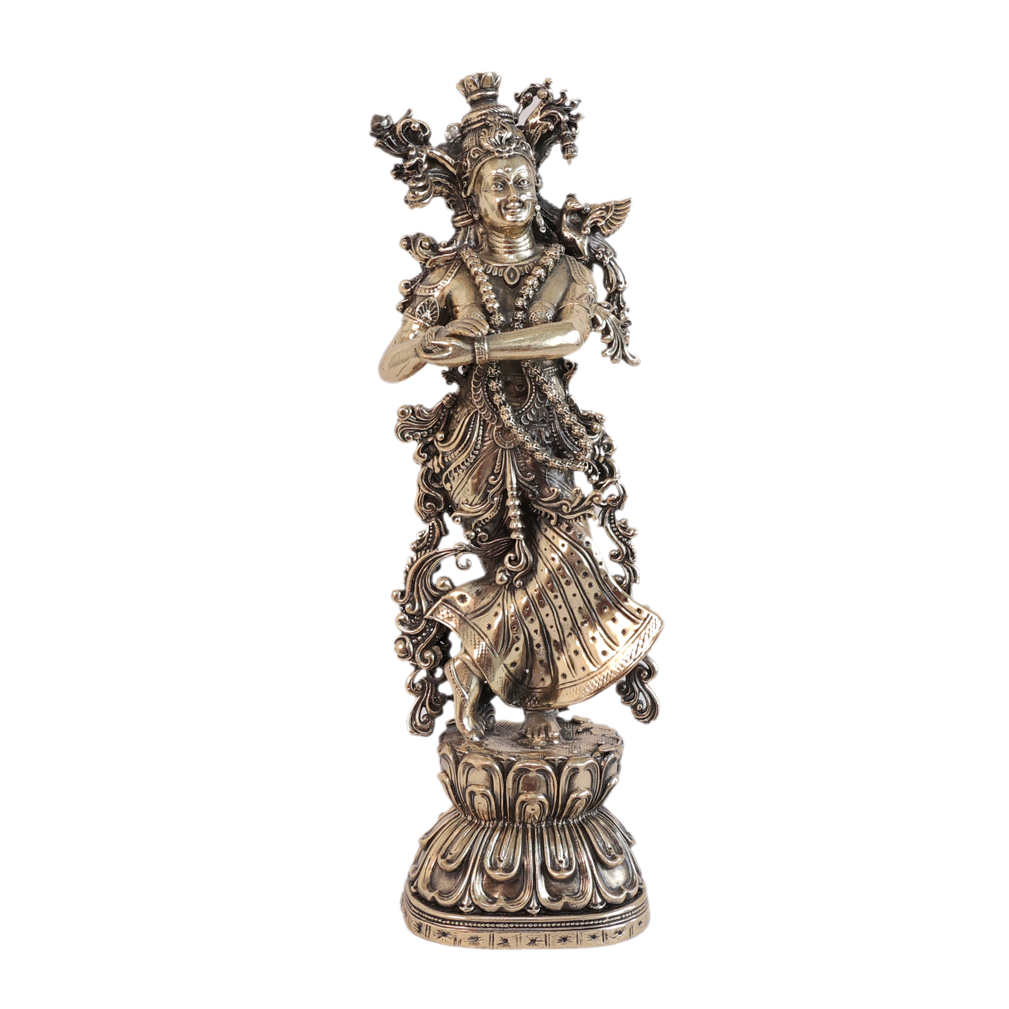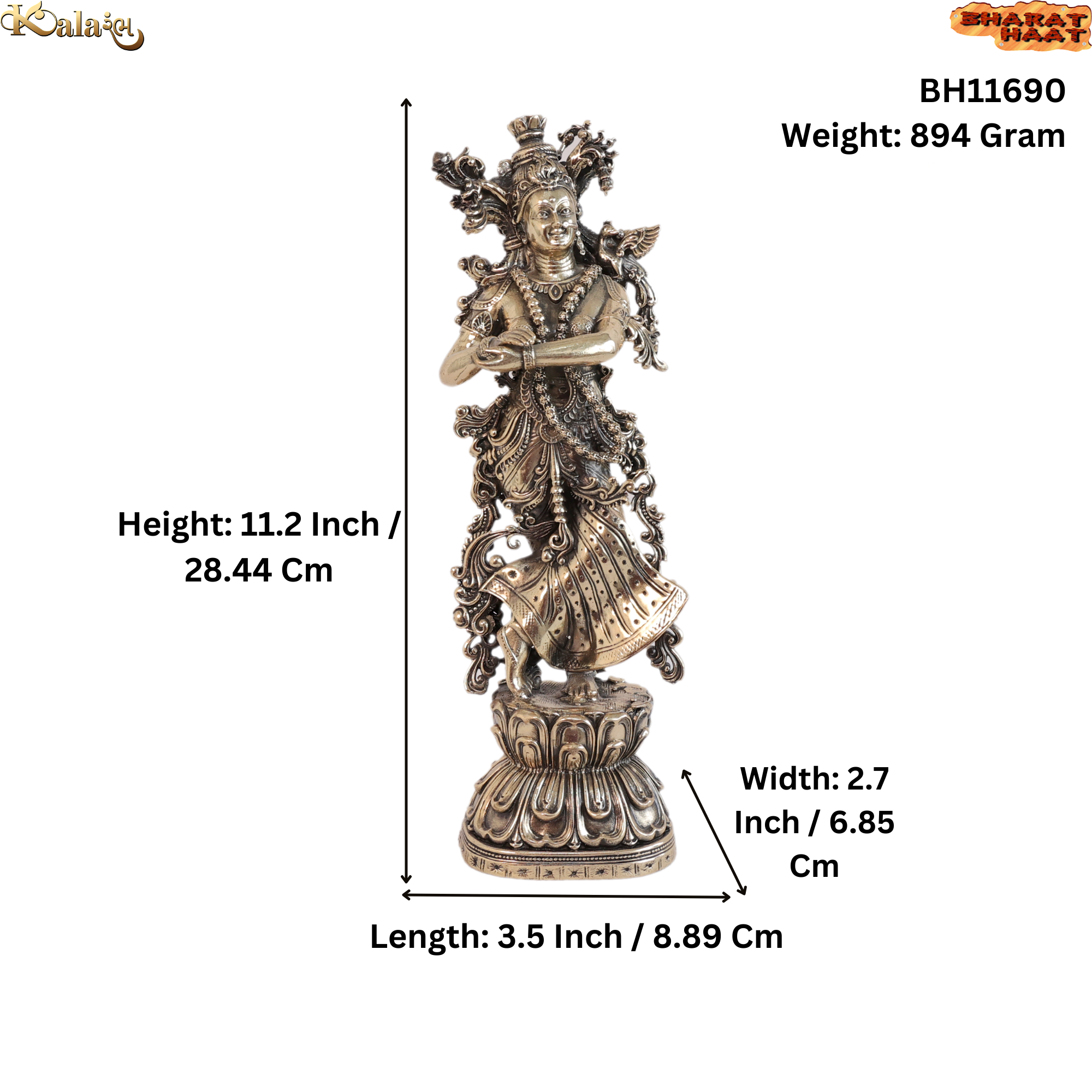 This statue is made from premium quality solid brass and crafted with traditional Indian artistry. The idol features the elegant standing form of Radha with fine detailing that highlights the beauty and divine grace of the goddess. The antique brass finish adds a rich and traditional look, making it a perfect addition to any home temple or spiritual decor.