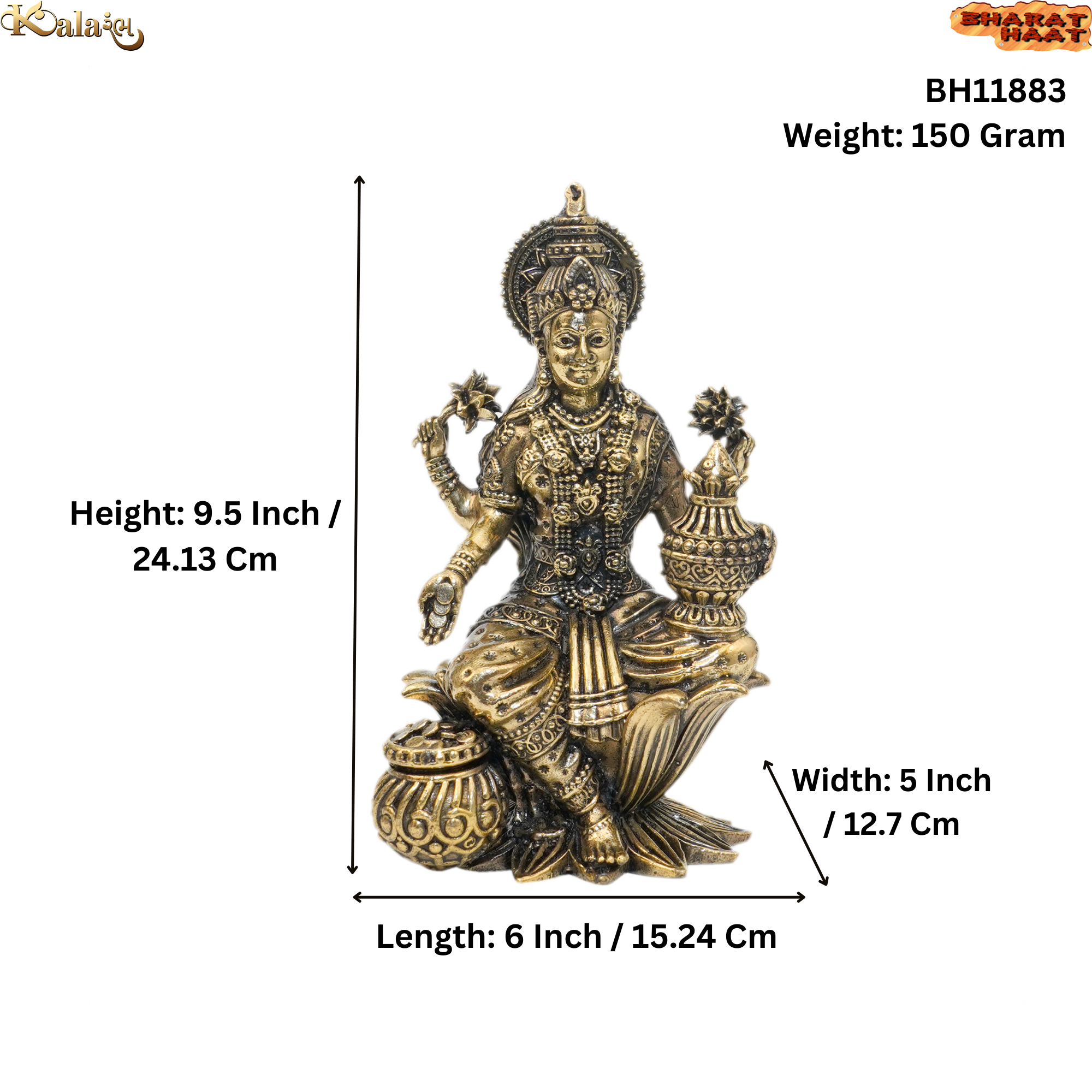 The idol measures 6 x 5 x 9.5 inches (15.24 x 12.7 x 24.13 cm) and weighs 1.5 kg, making it a strong and stable statue perfect for placement in a home temple, puja room, office altar, or meditation space.
