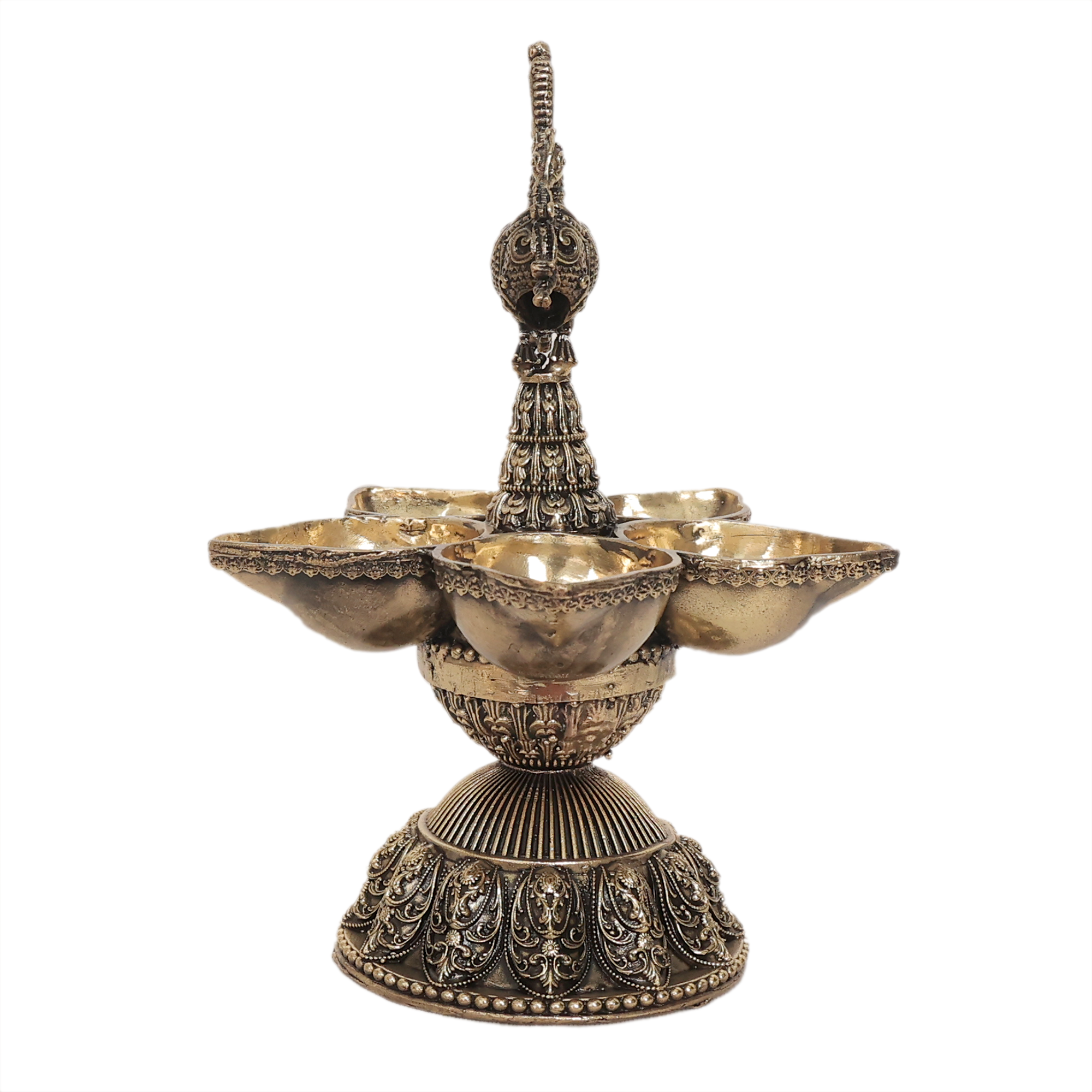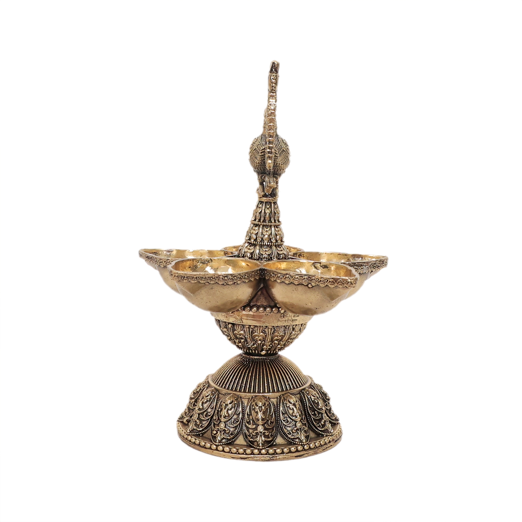 Crafted from premium quality solid brass, this oil lamp is durable, long-lasting, and designed for regular use during prayers and religious rituals. The antique brass finish and detailed craftsmanship give the diya a classic and traditional appearance that complements any home temple or spiritual space.