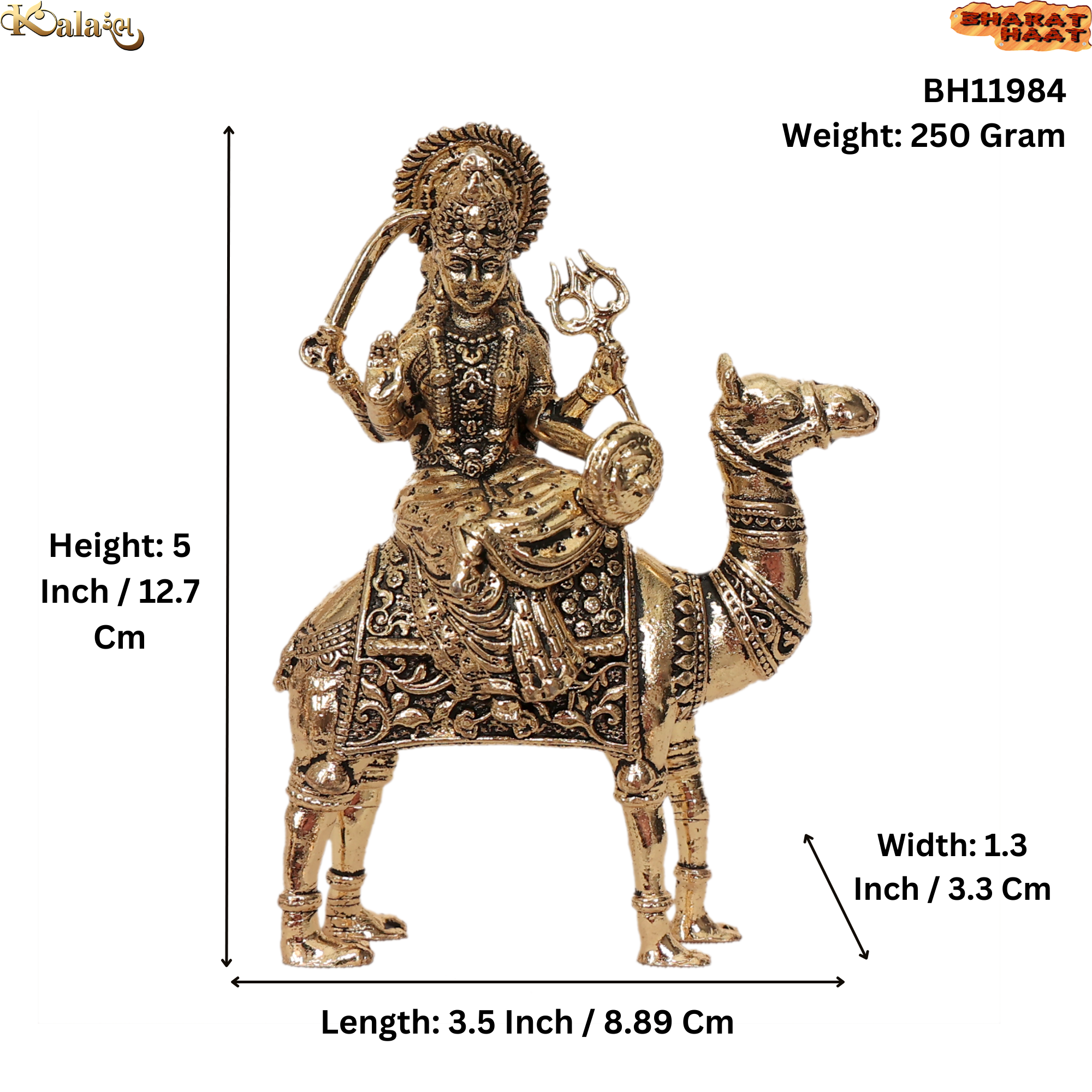 Compact Puja Size: Dimension – 3.5 x 1.3 x 5 Inch or (8.89 x 3.3 x 12.7 Cm); Weight – 250 Gram.
