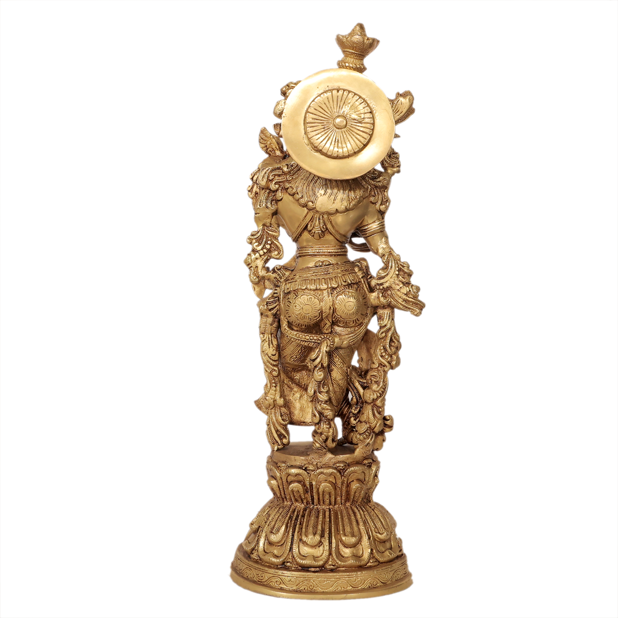 This stunning statue is made from high-quality solid brass and crafted by skilled Indian artisans using traditional techniques. The idol features fine detailing and a classic antique brass finish that highlights the graceful posture and divine appearance of Radha Rani.